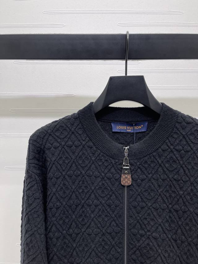 New, original, high-quality Louis Vui*Ton 2025 Early Fall collection! Stand-up collar, zippered, knitted long-sleeved cardigan! Custom-made from imported YB wool blend yarn, comfortable and soft, with premium texture. Ribbed collar and cuffs create an elegant and intellectual design. The zipper closure and leather buckle complement the three-dimensional four-leaf clover and diamond-shaped accents throughout. The overall shape is sophisticated and crisp, creating a unique brand-specific trendy style. It adds a touch of style to regular, versatile pieces for a stylish and sophisticated look! Available in two colors! Sizes SM-L3! High-quality, large-volume