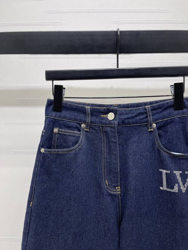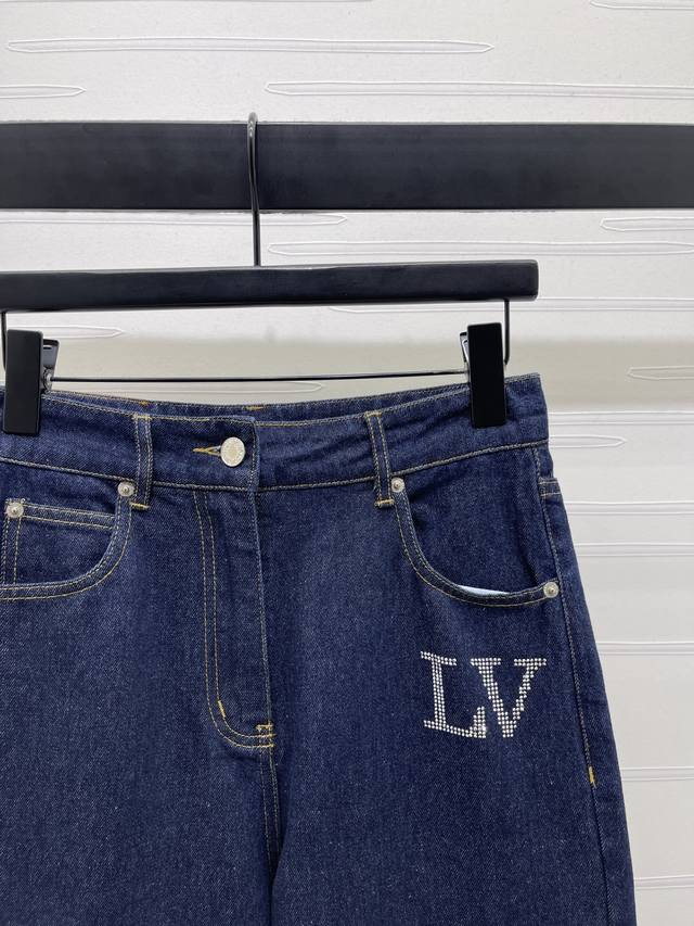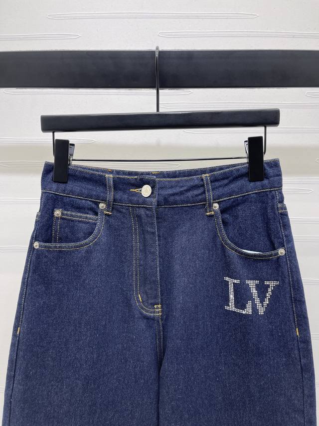 New, original, high-quality Louis Vui*Ton 2025 Early Fall collection! Straight-leg jeans with rhinestone lettering! Custom-made imported cotton twill denim, breathable, soft, and skin-friendly. High-waisted, buttoned, and symmetrical pockets add a layered look. Multiple enzyme washes , lettering logos, and colorful rhinestones create a stylish and effortless look. Straight-leg pants with a perfectly proportioned, fashionable silhouette! One color! Sizes SM-L3! High-quality, bulky stock A706B420C