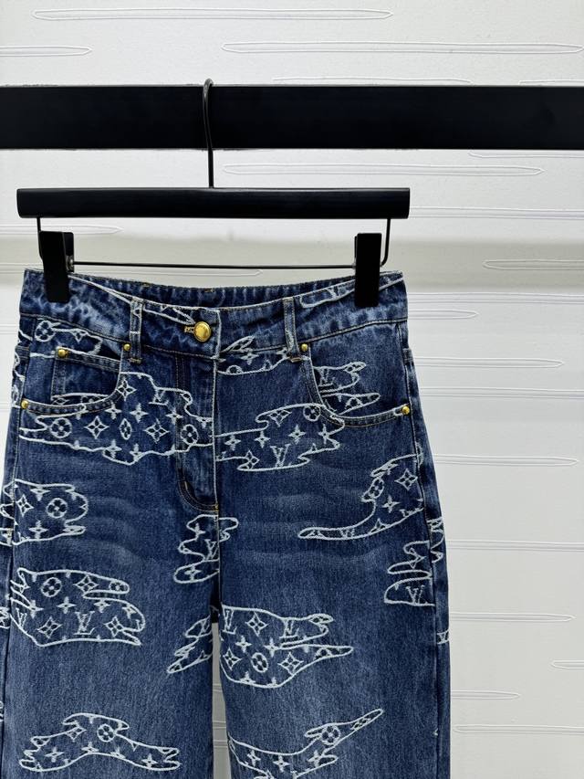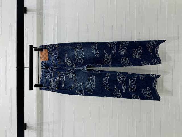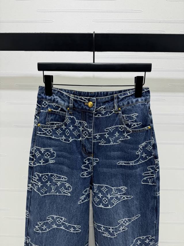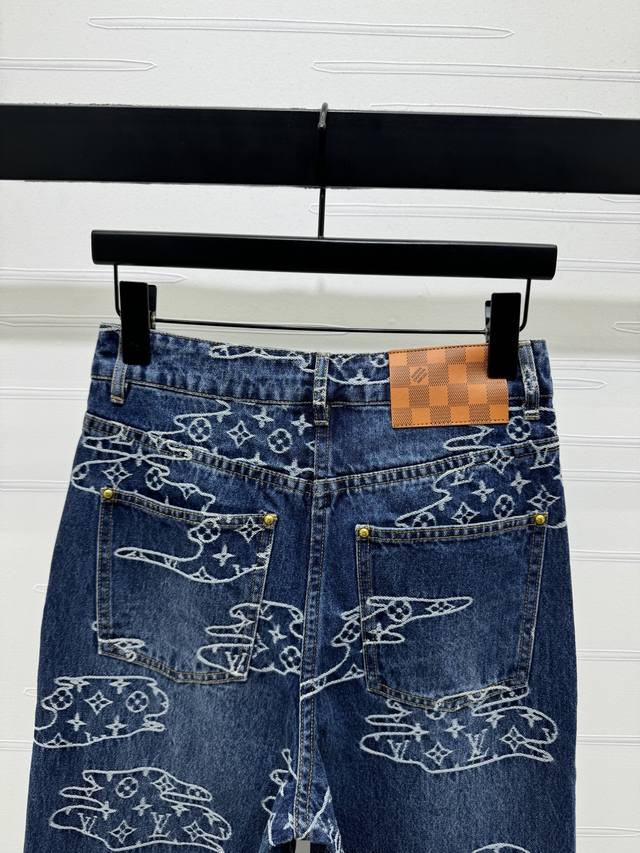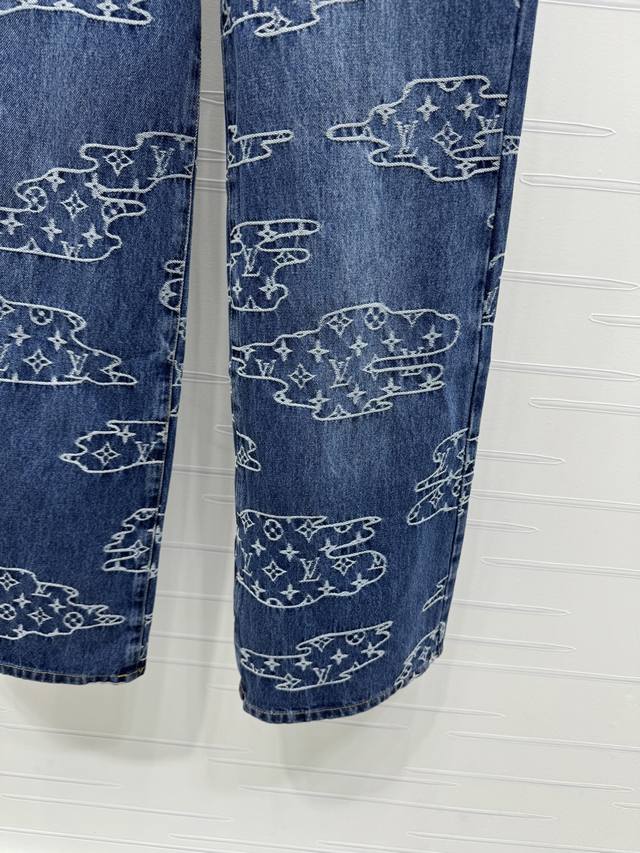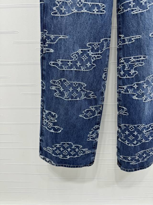 New, original, high-quality Louis Vui*Ton 2025 Early Fall collection! The same gradient straight-leg jeans worn by Gong Jun! Custom-made twill denim and cotton, multiple enzyme washes create a vintage, distressed look. The cut is tailored to the body's curves. High-waisted, buttoned-down pockets and all-over moire, four-leaf clover, give it a vintage feel, highlighting the brand's style. The complex visual effects create a fashionable style full of personality and creativity. The straight-leg, wide-leg silhouette is comfortable and fabricated for a relaxed, fashionable, and accommodating fit. It modifies leg shape while exuding a high-street casual vibe! 1 color! 3 sizes SM-L! High-quality, bulky stock A706B460C