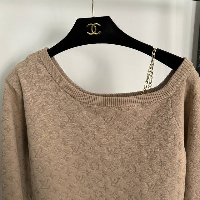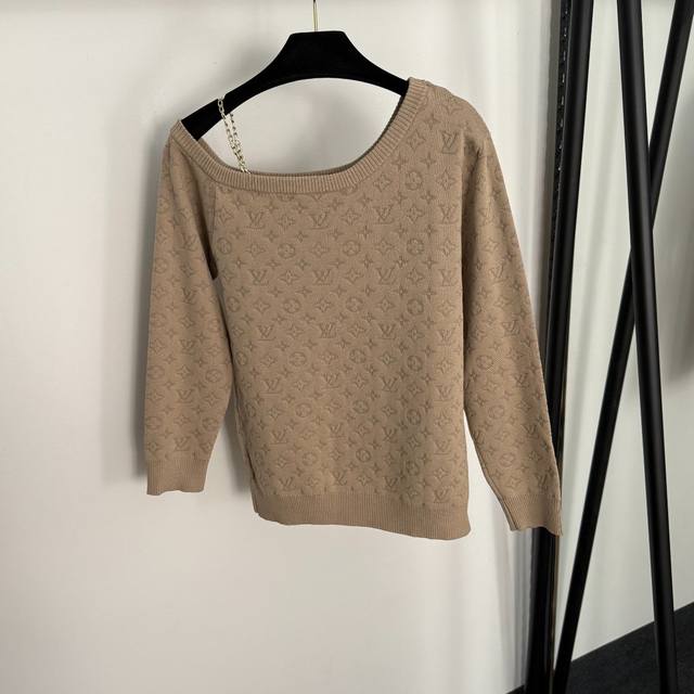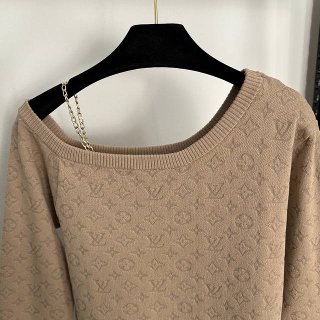 Style No. 20255295 Lv* New monogram logo jacquard off-shoulder camisole sweater