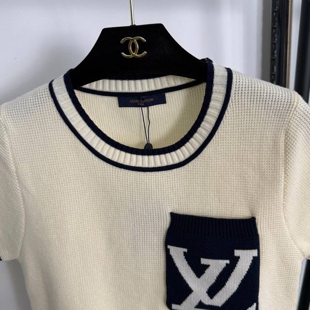 Style No. 20255296 Lv* New Logo Letter Colorblock Pocket Pullover Short Sleeve