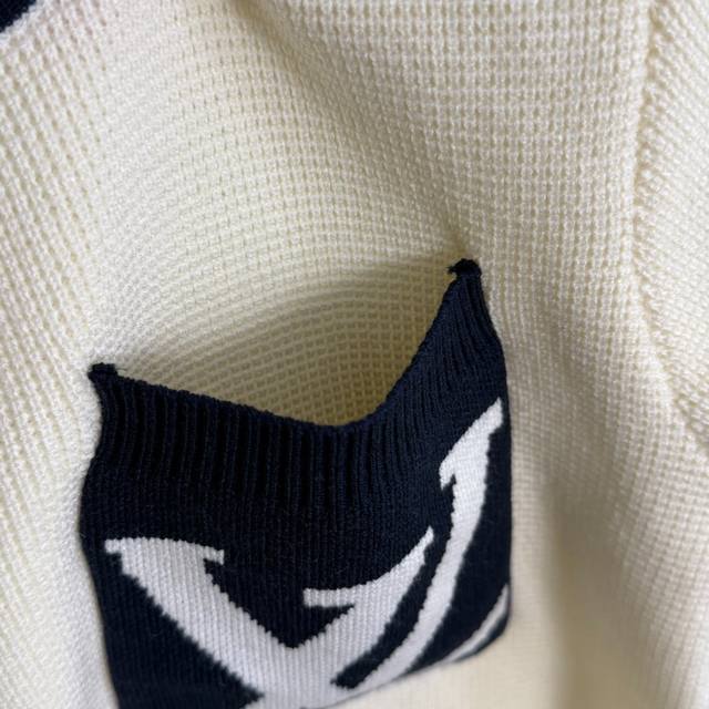 Style No. 20255296 Lv* New Logo Letter Colorblock Pocket Pullover Short Sleeve Cardigan Top, Off-white, Blue, One Size; Chest 80, Sleeve Length 21, Length 50; Weight: 0.205Kg