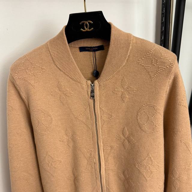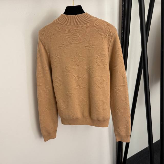 Style No. 20257041 Lv* New Monogram Logo Jacquard Long-Sleeve Wool Knit Cardigan Zipper Jacket, Khaki, Sizes S, M, L, M: Shoulder Width 37cm, Chest 92cm, Sleeve Length 60cm, Length 56cm; Weight: 0.565kg. DDD
