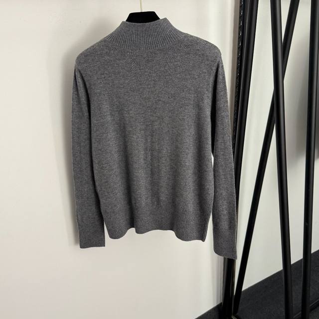 Style No. 20257840 Lv* New flocked logo embroidered letter mock neck long-sleeved wool and cashmere knit top, apricot, rose red, gray, S, M, L. Size M: shoulder width 37, bust 94, sleeve length 62, length 61; weight: 0.255Kg. DDD