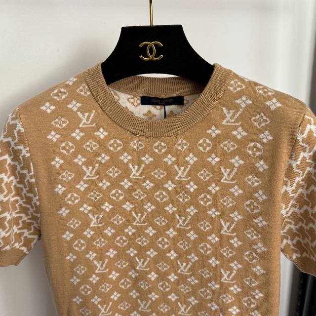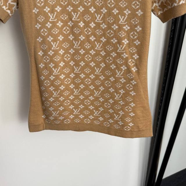 Style No. 20257848 Lv* New Monogram Logo Letter Short-Sleeve Wool Knit T-Shirt, Khaki, Navy Blue, Apricot, Sizes S, M, L, M: Chest 80cm, Sleeve Length 21cm, Length 60cm; Weight: 0.230kg DDD