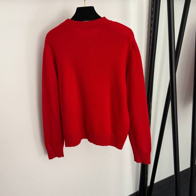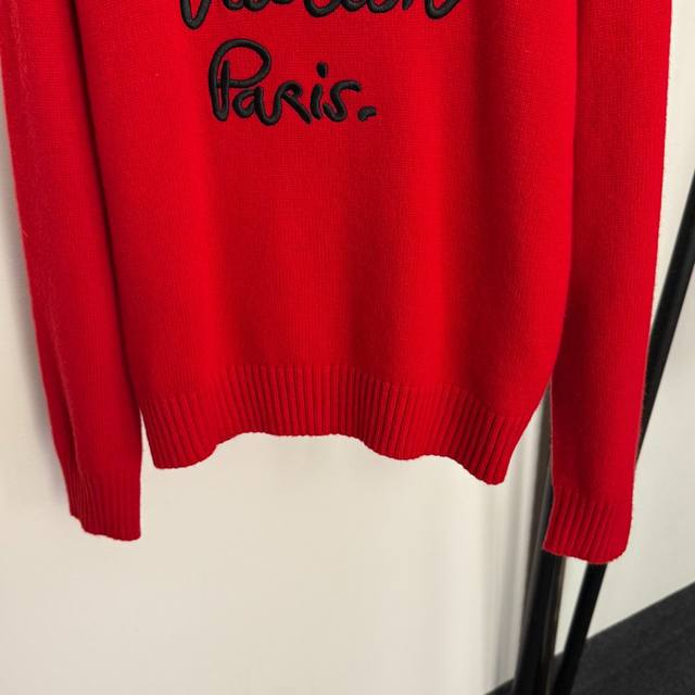 Style No. 20259275 Lv* New style long-sleeved wool knit sweater with embroidered logo on the chest, red, size S, M, M: shoulder width 41cm, chest 102cm, sleeve length 59cm, length 58cm; weight: 0.380kg DDD