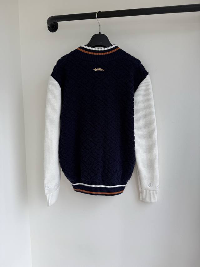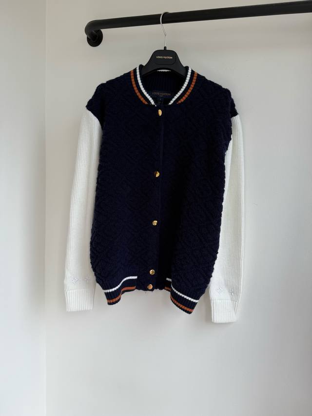 Top-tier Louis 25 Autumn/Winter New Color-blocked Knit Jacquard Baseball Jacket - Shipped! Heavy-duty 3D tailoring, imported knit fabric, soft, delicate, and comfortable texture. All hardware is custom-made with electroplating. A youthful, classic, loose, and relaxed fit. Made with sheep's wool and cashmere yarn. Highly recommended! Keeping one for myself. See the details for workmanship and quality. In stock. Sizes 36, 38, 40 DDD