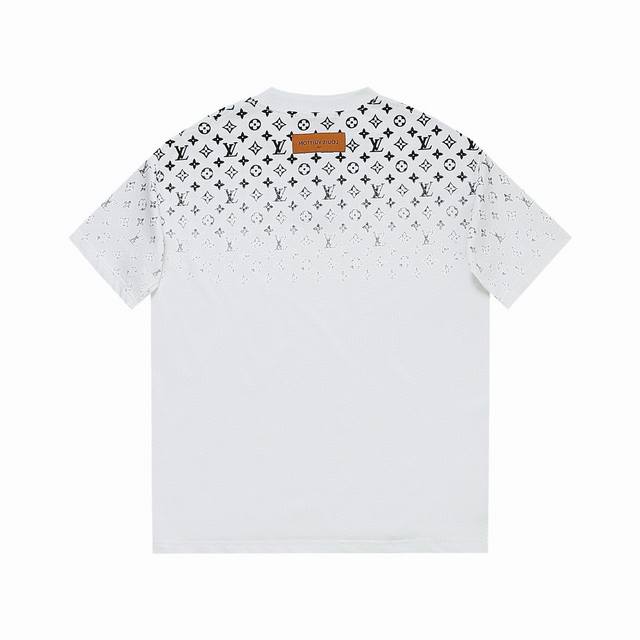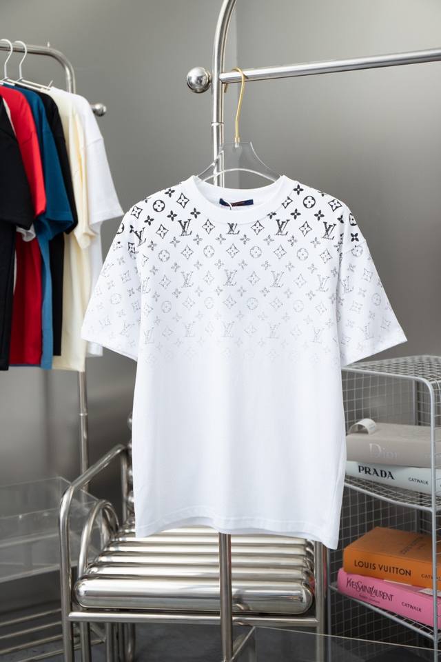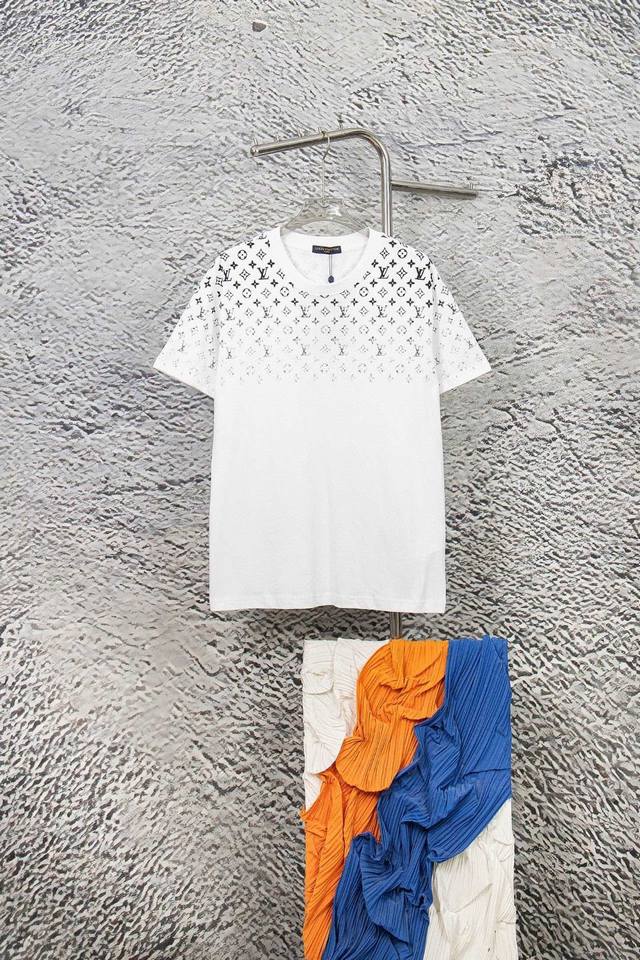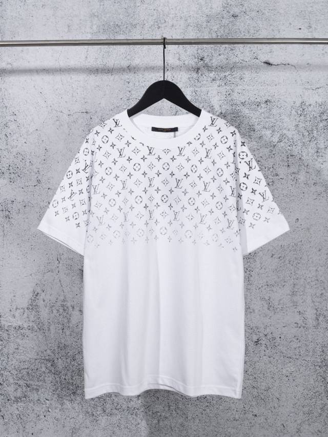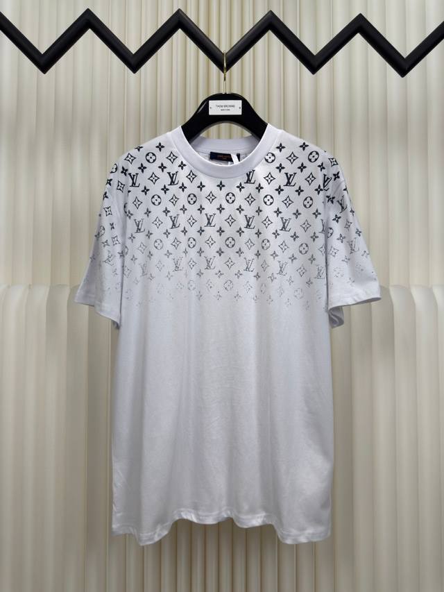 24Ss new gradient printed short-sleeved T-shirt ~ Custom fabrics ~ Matching 1*1 flat knitting machine with pure cotton ribbed. The entire garment is digitally direct-printed with Konry white ink on the front, back, left and right sleeves. The first draft is produced based on the Y-plate scanned pattern, and the clarity of the first draft is corrected by hand to ensure that the printed pattern has a gradient and orderly visual effect! A must-have item for high-end people, with original accessories and complete three labels! Same style for men and women!