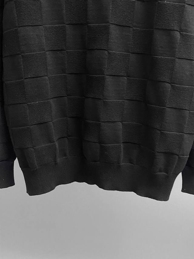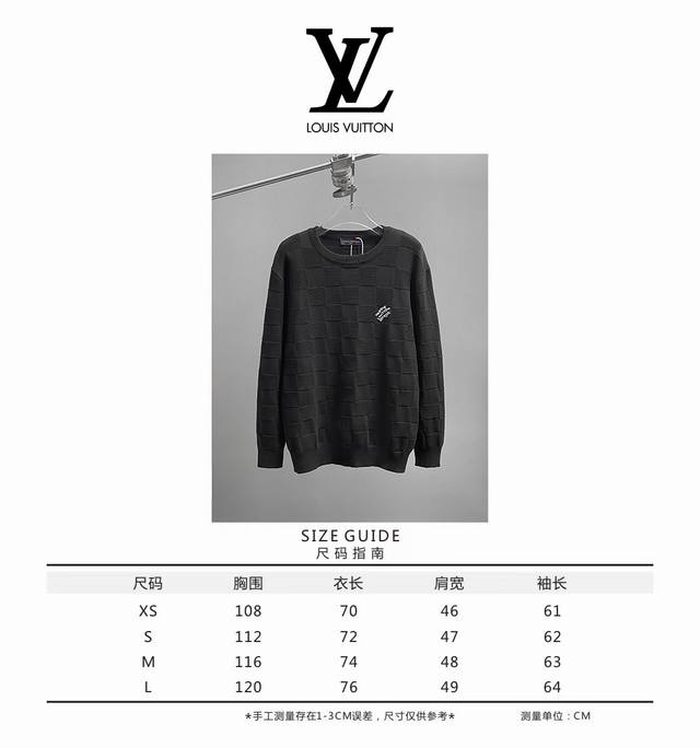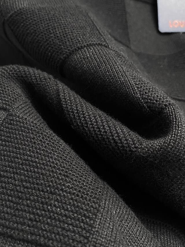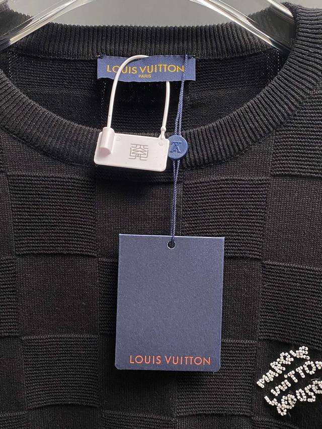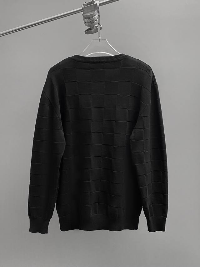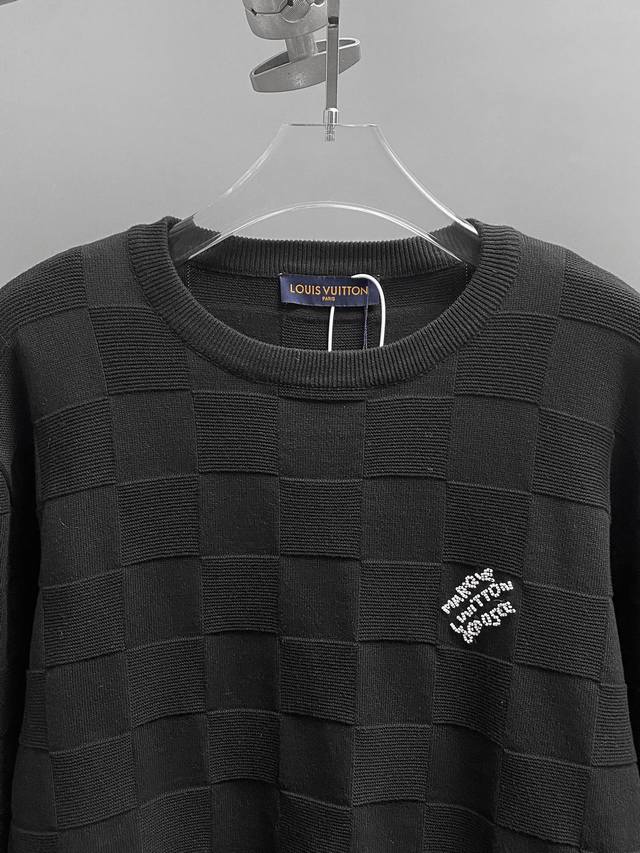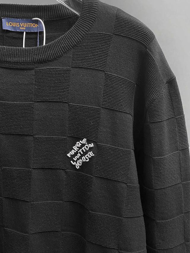 This sweater reinterprets the brand's classic Damier pattern with knitted texture, presenting the Marque Lv Deposee beaded embroidery that debuted at the 25th Spring/Summer fashion show, and all-over Damier stitching.