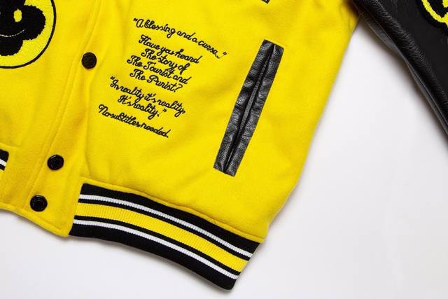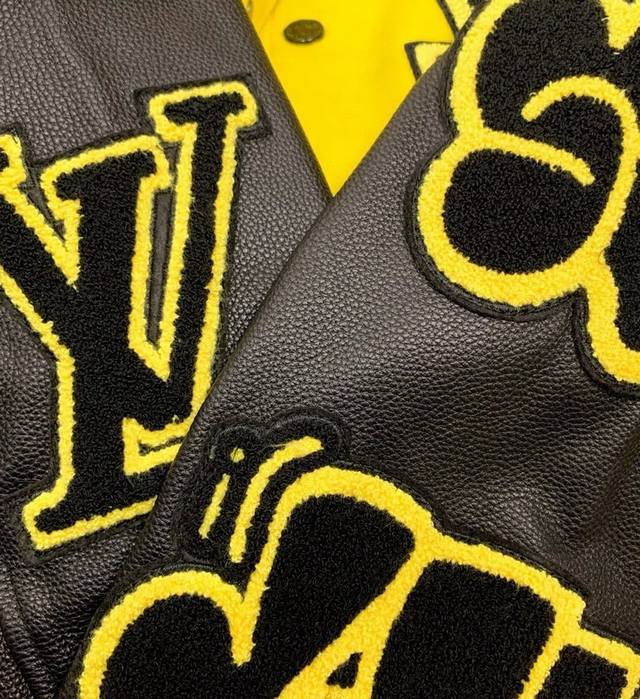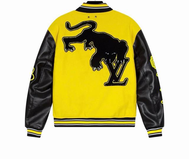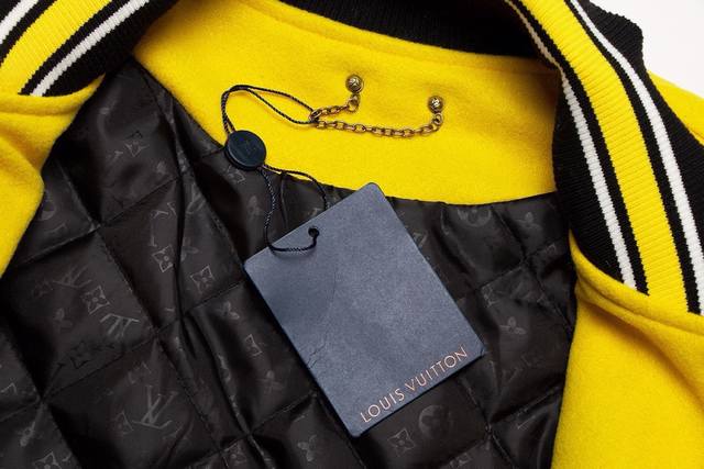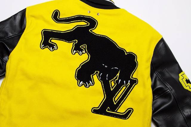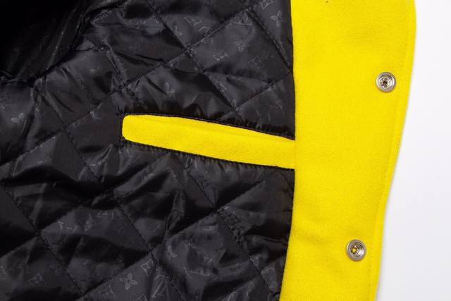 A high-quality, high-weight, and currency-neutral Louis Vuitton Ss early spring runway-inspired yellow and black baseball jacket. After a month of ordering the original model and making the mold, it's finally shipping! I absolutely love the lucky yellow colorway, and it looks so cool on me. A Douyin blogger claims this year's new black and yellow colorway will become a future trend. A quick look at street style reveals celebrities wearing this jacket as a collectible, a must-have for men and women who embrace the luxury lifestyle. Developing the highest-quality version online took a month. Made from custom-made pure wool and lambskin, each piece weighs a whopping 900 grams, with a wool content of 90% and cotton and 10% nylon. The high cost of this custom-woven wool jacquard ribbed fabric is made on imported German flat-knitting machines, ensuring it retains its shape, color, and pilling. The top-grain imported lambskin features a wrinkled, textured finish, and meticulously hand-cut, with meticulous attention to detail. The beauty of the entire garment hinges on this area, ensuring the highest level of craftsmanship and attention to detail. A full set of custom-made accessories, buttons are identical to the original, the mold is as high as five digits, and the letters are clear and perfectly restored without any difference. One piece is perfect! High-end and classy! The entire garment is all custom-made with heavy craftsmanship, with towel appliqu