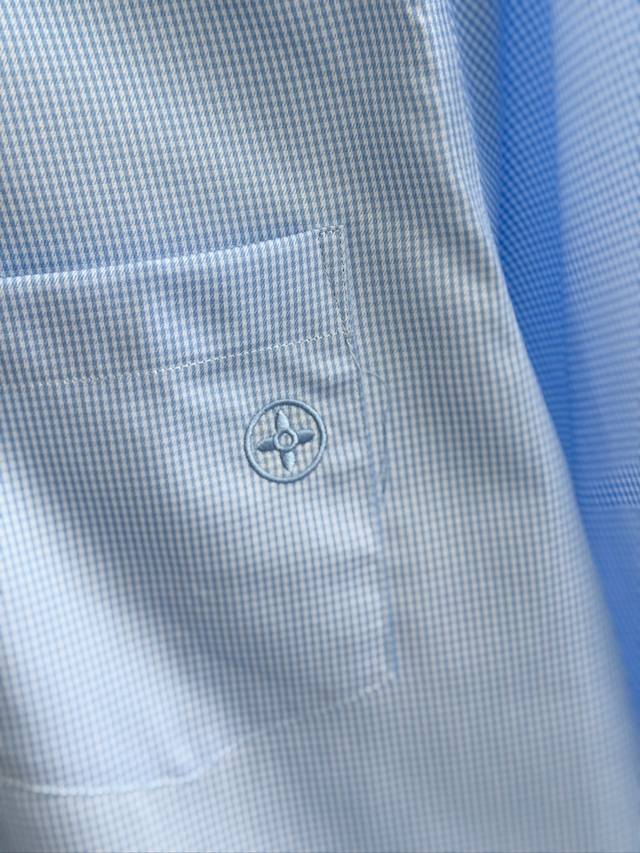 The most attractive detail is its exquisite plaid texture. The blue and white plaid has bright colors and harmonious contrast, which is both simple and fashionable. This detailed design gives the shirt a more layered and three-dimensional feel in the overall visual sense, making a deep impression whether viewed from a distance or up close.