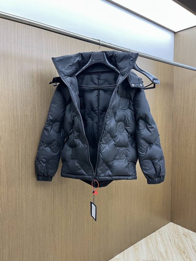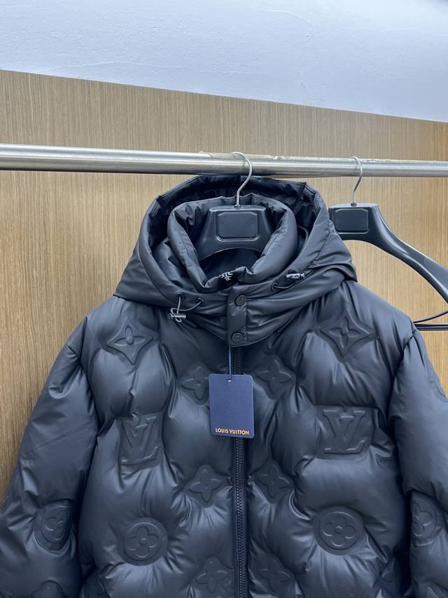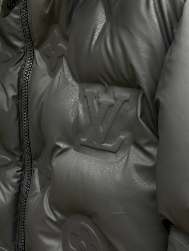 Autumn/Winter Premium Down Jacket Louis Vuitton 24Fw Technical Leather Monogram Embossed Down Hooded Jacket Ddd This belted jacket features a full-width Monogram pattern with technical leather embossing Ddd and is filled with 90% European standard goose neck down. Ddd Standard fit Ddd Full-width Monogram embossed pattern Ddd Zipper front Ddd Leather ribbed collar Ddd Side seam pockets Ddd Padding Ddd 90% goose down filling Ddd Main fabric: 100% nylon, except for coating Ddd Other: 84% polyester, 16% nylon Ddd Size: 48-5 6. DDD Ddd Bl DDD D