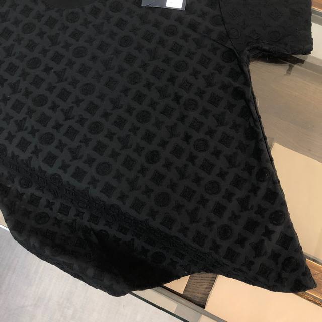 Clouis Vuitton Lv 25Ss counter same style terry round neck short-sleeved T-shirt ~ couple style ~ made of cotton terry fabric, decorated with the same color jacquard pattern. Thick three-dimensional! The thickness of the clothes makes the overall high breathability and softness more prominent, and the full cotton texture causes extreme comfort. A must-have item for high-end people, with original accessories and three complete standards! Same style for men and women!