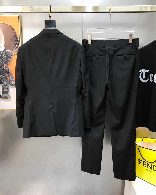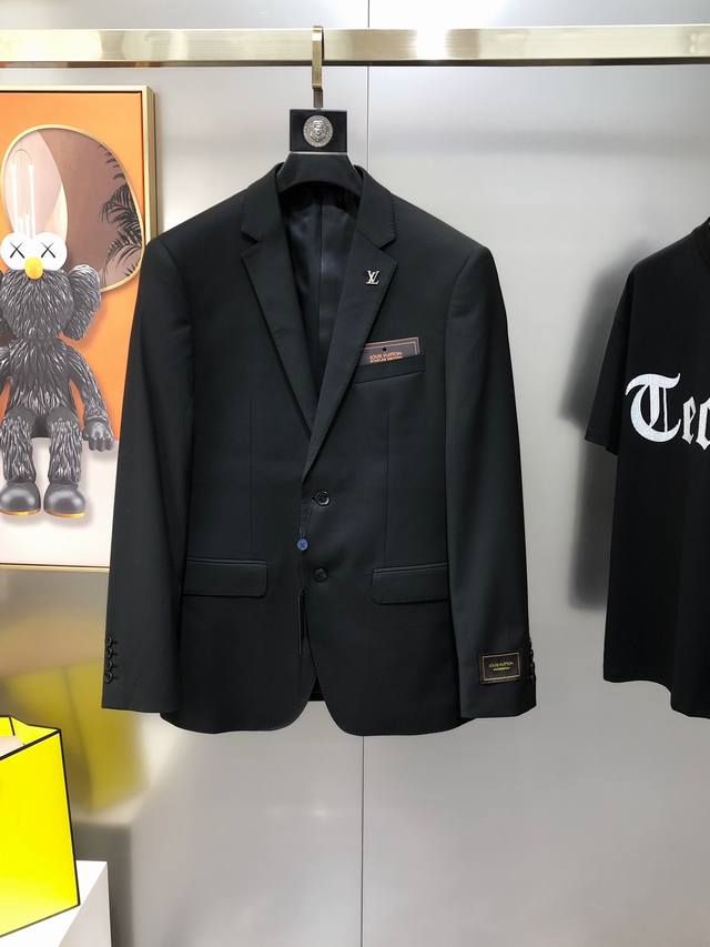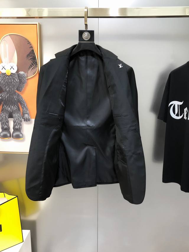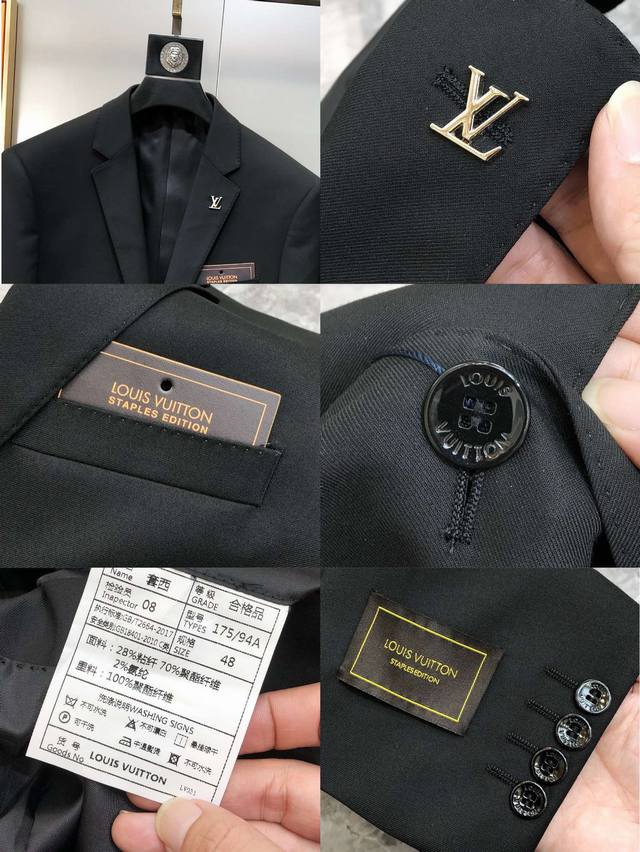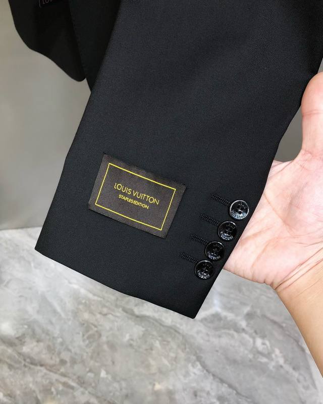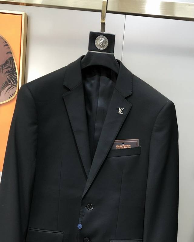Complete set of tops and trousers Lv Louis Vuitton 2025 early spring new original men's business casual suit set. The suit jacket and trousers can be detached and sold simultaneously on the official website. High-end customization, fashionable and versatile popular items. The logo brooch design on the collar is made of original imported 100% polyester fiber with innovative memory fabric. Master-level tailoring! Soft and delicate to the touch, comfortable to wear. Customers can provide original imported engraved hardware accessories, smooth lines, exquisite craftsmanship, and great style. It is very fashionable and handsome when matched with anything. Highly recommended! Counter size: 46-58=S-4Xl. The largest size can wear about 200 pounds. Please indicate your height and weight when placing an order. It will be shipped the next day in black