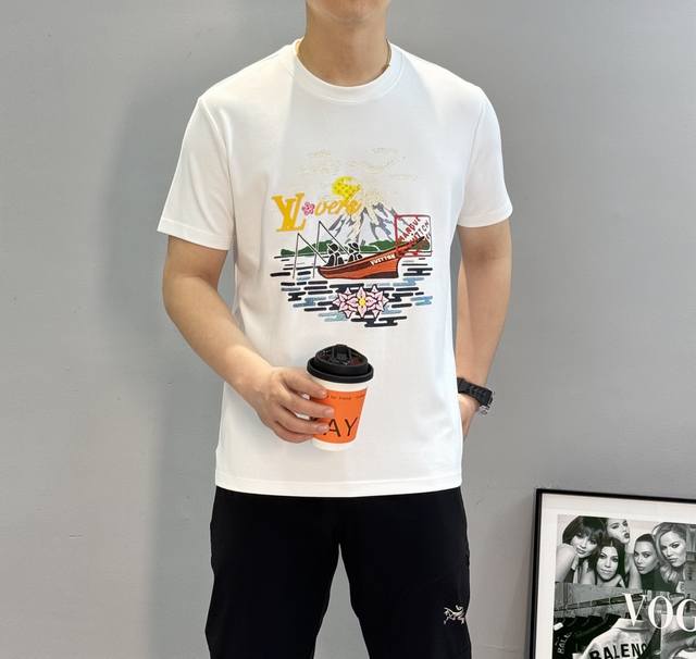 Donkey Brand *25S Modal T-shirt. This new product features intricate graphics depicting vibrant scenery, showcasing a playful fusion of traditional Japanese culture and brand elements. Made from premium organic 300g modal cotton, it's breathable, comfortable, and durable. The classic Dior logo is embroidered on the chest in three-dimensional detail, showcasing a new micro-logo design. The fitted silhouette showcases a man's urban style. Colors: Black, White, and Army Green. Sizes: M-3X1 for a slim fit! S and 4X1 are available for customization. Sizes 175 to 140 catties are recommended.