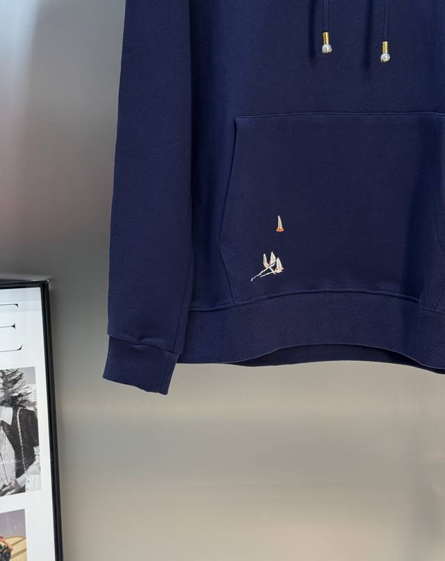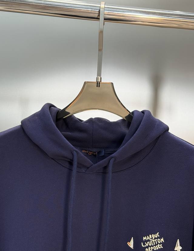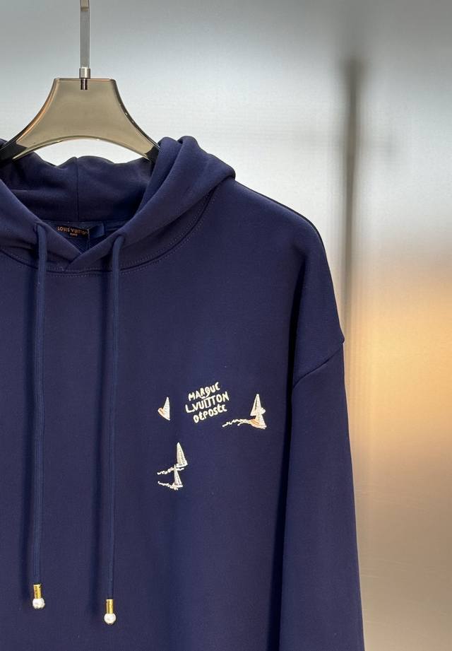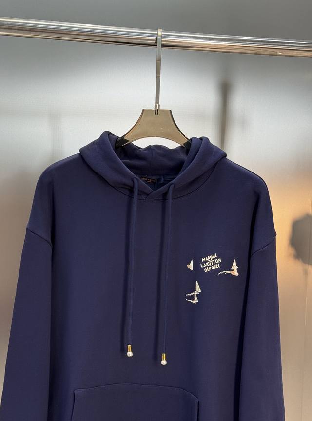 Donkey Brand's new embroidered sailboat hooded sweatshirt. 25S new product recommendation! Made from 420g custom cotton and wool loop fabric. The fabric is breathable, comfortable, and easy to clean. Embroidery craftsmanship: The sailboat is embroidered on the front with a large 1V, and the Marque L.Vuitton