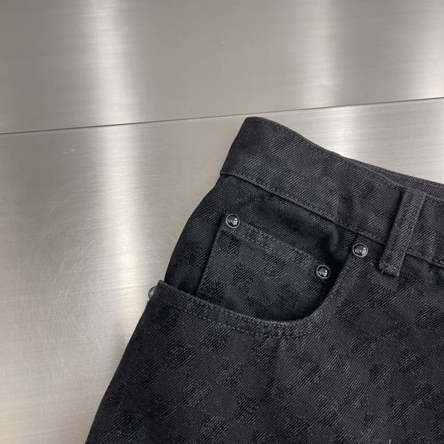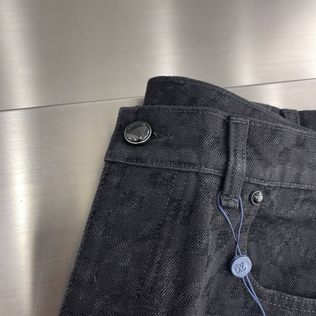 Made of twill cotton denim fabric, multiple enzyme washing process to create a soft and natural fading effect, the back presents a suede label, with delicate brushstrokes to play with the deep design of the season, full flocking pattern and logo to highlight the rich texture, logo pattern pearlescent buttons to add finishing touches, the overall line is straight and delicate, the fabric is comfortable and soft, the color is consistent and there is no color difference, it can be matched with the same style to create a fashionable look, suitable for various occasions, customized smoked black paint hardware buttons, and the whole body is cut in a grid. Three labels are complete.