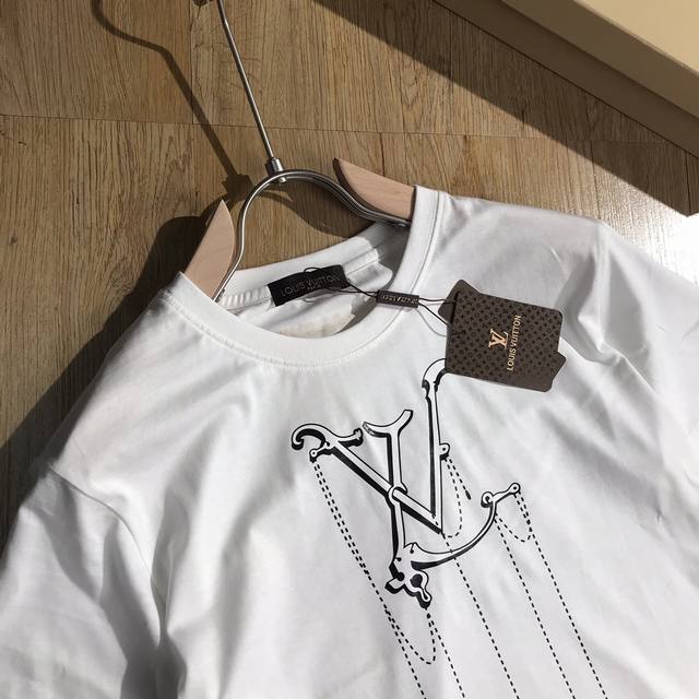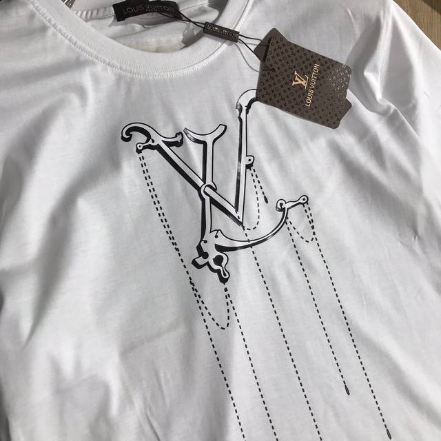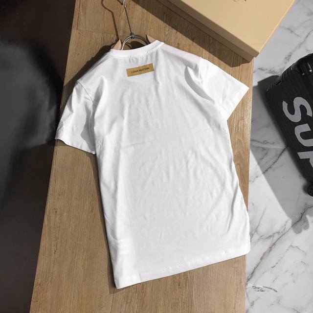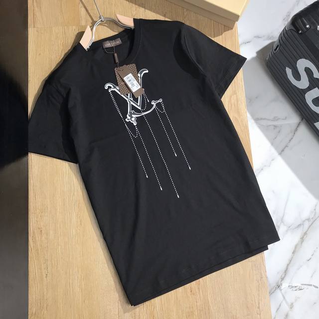 Exclusive Louis Vuitton high-quality men's mercerized cotton short-sleeved T-shirt with tag, collar label, and washing label. Authentic spring/summer style. #Foreign trade order, high-quality mercerized cotton fabric! Lightweight, refreshing, soft, and comfortable. Classic, artistic, with a subtle background and print design that creates a lustrous, vibrant, and youthful look. Stunningly stylish worn alone or layered underneath. Colors: black, white, gray, and yellow. Sizes M-Xxxl