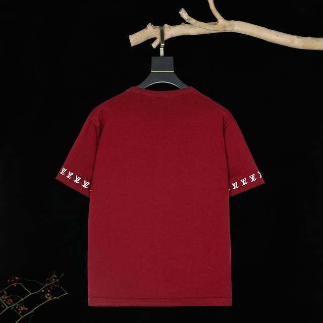Louis Vuitto* Louis Vuitto's new jacquard logo knit short-sleeved T-shirt. Made from crisp cotton, this T-shirt features a ribbed collar. The jacquard Louis Vuitton logo is featured on the chest. This versatile piece is a perfect complement to any outfit. Available for both men and women. Sizes: XS, S, M, L,