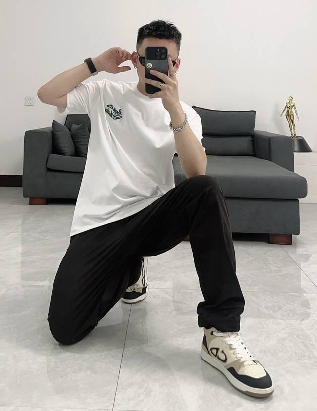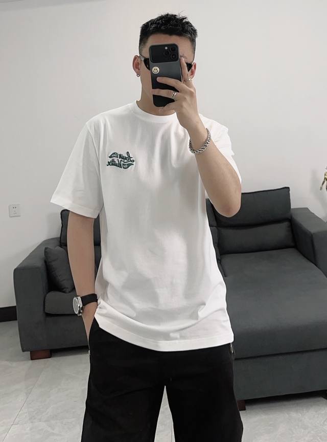 Louis Vuitton 2025 Summer New Embroidered Loose Short-Sleeve T-Shirt, Unisex DDD This T-shirt features exquisite embroidered brand logo on the left chest, showcasing the brand's identity and style; the back features a woven label patch with the brand's iconic elements, exuding a subtle yet luxurious feel. Its design is simple yet highly recognizable, ensuring comfort and breathability, making it a trendy and practical item. DDD Colors: Black, White DDD Sizes: S-XL DDD