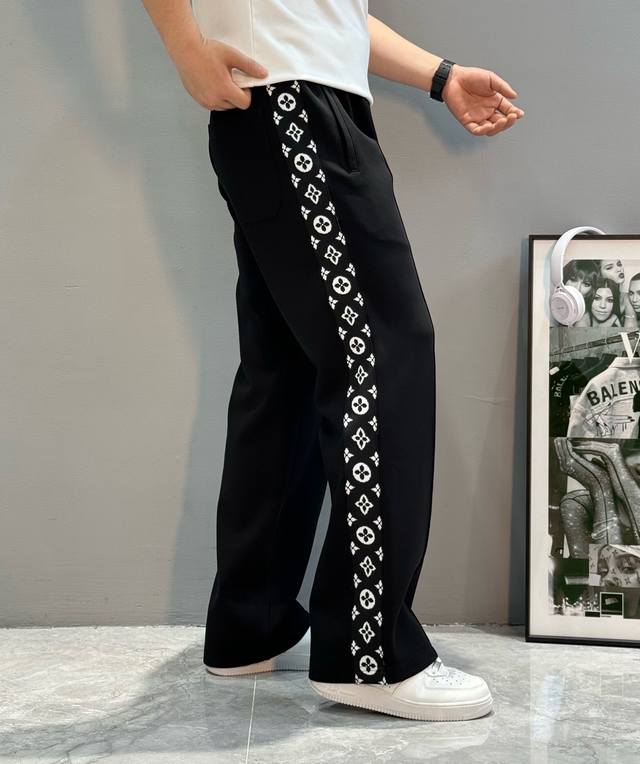 Louis Vuitton * 25S New Monogram Casual Sporty Straight Leg Pants. Custom-made classic monogram webbing. Full of brand feel! Made from a soft and comfortable cupro-polyester blend, the loose straight leg design is perfect for everyday casual wear or sports . The side pockets are super practical. Pairs well with sneakers or casual shoes for a stylish look, easily creating a simple yet individualistic style. Colors: Black, Gray. Sizes: M-3XL. Recommended size: L (for someone 175cm tall and weighing 145kg).