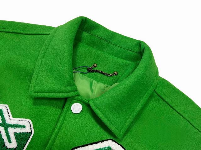 . Made from custom-woven and dyed 900g cashmere with a cupro silk lining, cotton pockets, and embossed genuine cowhide sleeves. Custom-made wool ribbing is complemented by tatami towel embroidery on a Tajima embroidery machine. Custom-made hardware buttons are included.