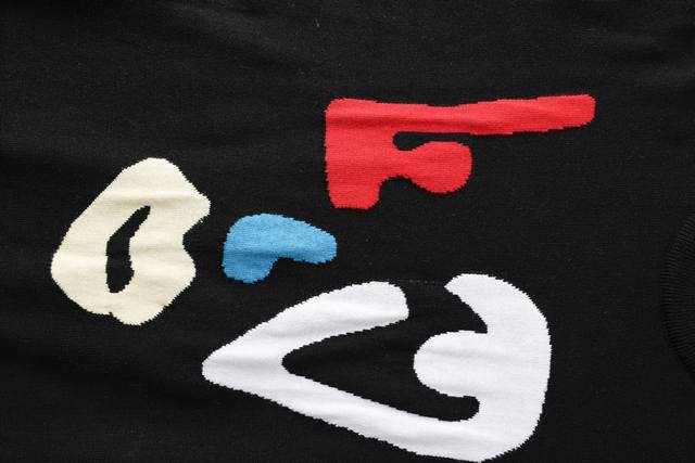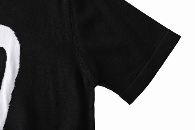 This short-sleeved sweater is made of dense cotton fabric. The classic style is completed using jacquard knitting technology. The front and back panels have a unique smiley face jacquard design. The fabric is comfortable and feels excellent. Unisex style