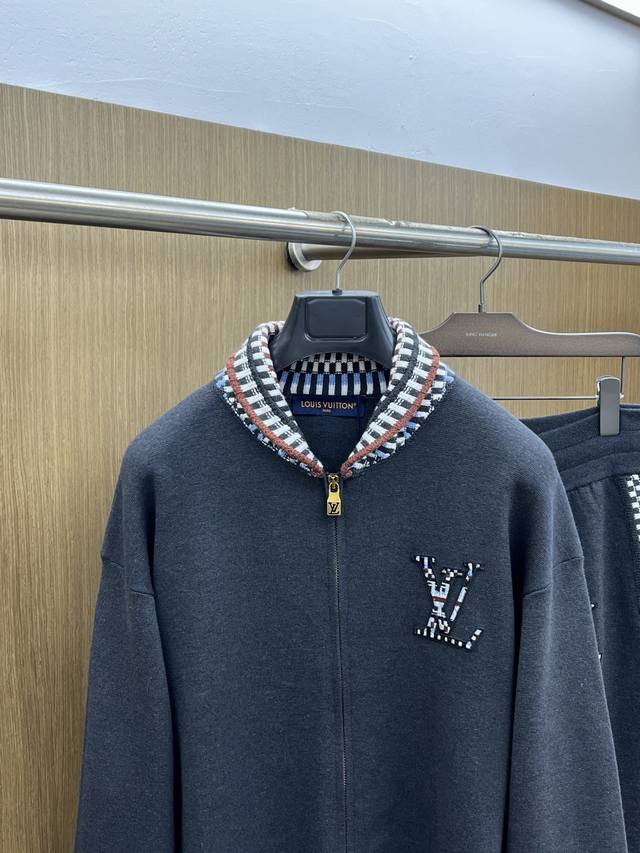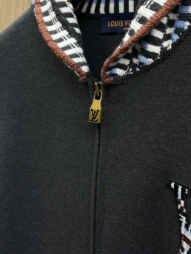 Louis Vuitton Fall/Winter Coat. When the classic Monogram element meets a subtly patterned knit, the understated black base highlights the LV logo adorned with intricate details, while the contrasting webbing at the neckline is a subtly stylish touch. The zipper opens and closes cleanly, and the relaxed silhouette flatters all body types, effortlessly exuding sophistication for everyday commutes or casual social occasions. A high-quality piece that embodies understated luxury, this is a timeless classic that grows on you with every look. Color: As pictured. Sizes: S-XL.