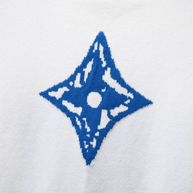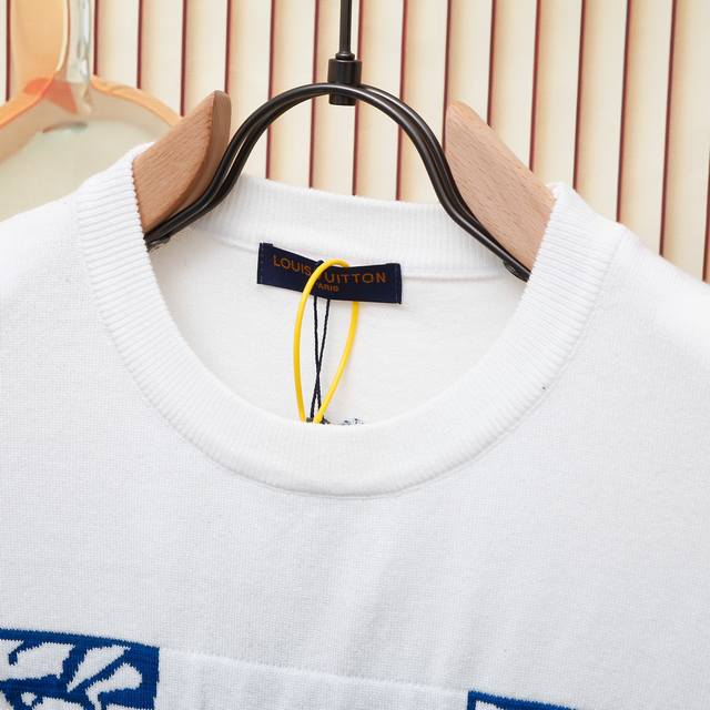 This short-sleeved sweater is made from imported custom fabric with a high-quality, comfortable and soft texture. The classic style is completed using jacquard knitting technology. The front and back panels have a jacquard logo design. The fabric is comfortable and feels excellent. Unisex style