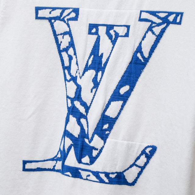 Louis Vuitton front and back blue flowered wool short-sleeved sweater