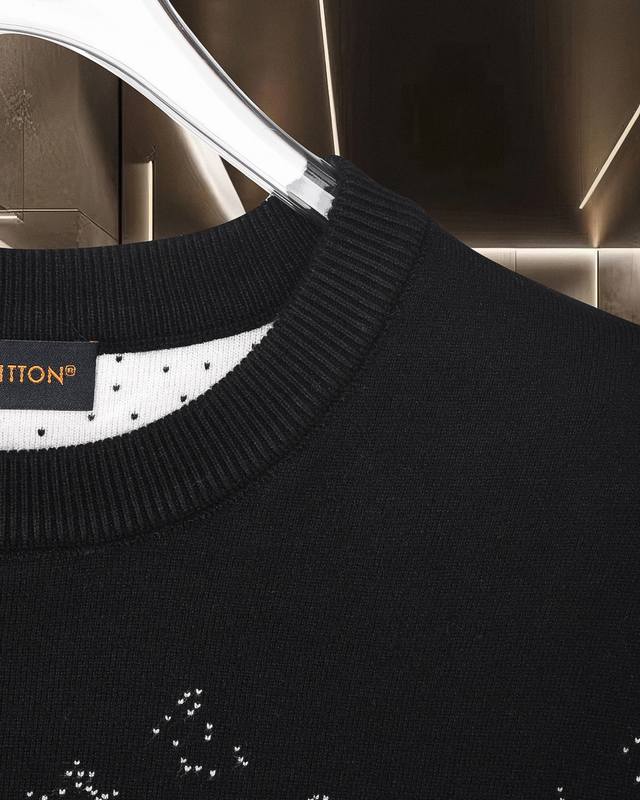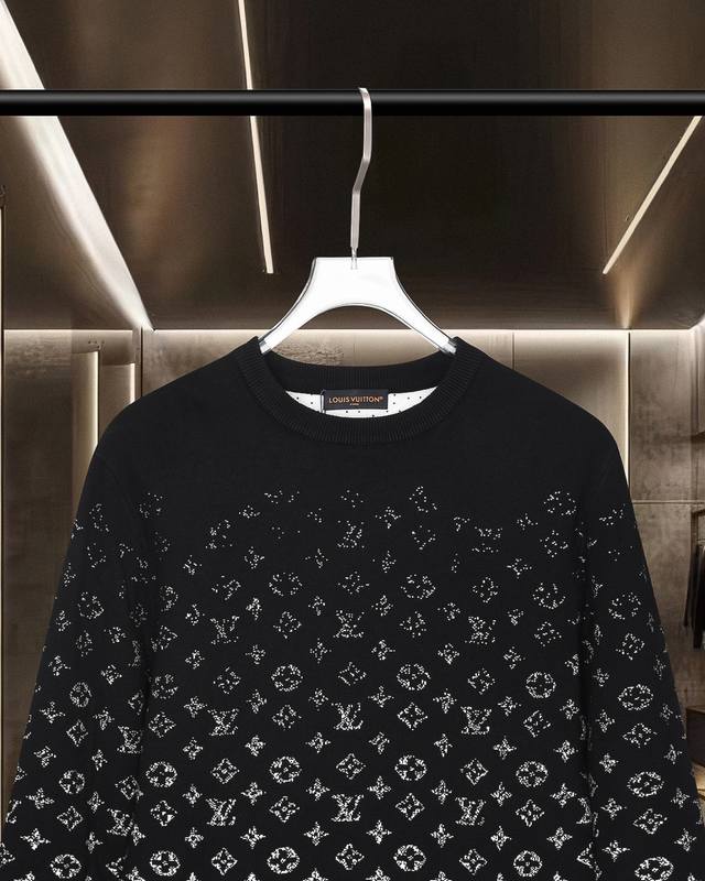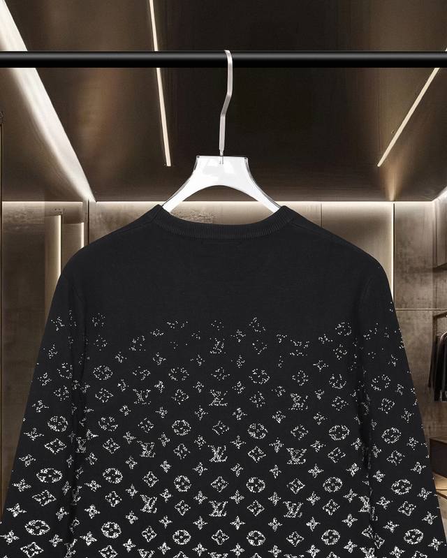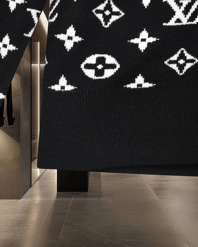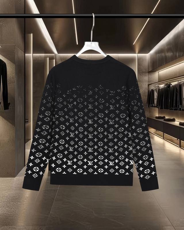 Louis Vuitton Lv 25Fw classic style all-over print, obscure floral logo, jacquard pullover sweater. 2025Ss official website new original fabric, same as the official T-shirt. Custom imported wool blend fabric, high-end version, custom-made at the counter. Highly breathable and comfortable fabric, exquisitely crafted with impeccable detailing, custom logo engraved buttons, and all three labels. Brand elements design concept, embodying high quality. Soft and delicate feel! Casual cut, superb upper body style. Color: Black. Sizes: M-Xxxl.
