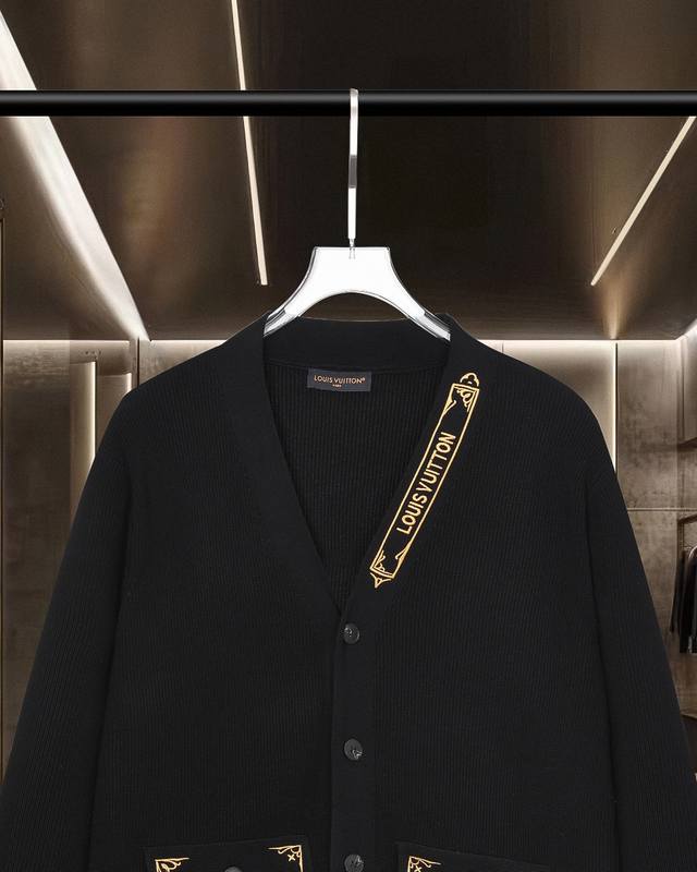 Louis Vuitton Lv 25Fw Limited Edition Cardigan Sweater with Embroidered Logo and Lettering, Same Style as Jackson Wang. 2025Ss Official Website New Original Fabric, Same Style T-shirt Custom Made. High-end Version, Custom-Made in Imported Wool Blend Fabric, Breathable and Comfortable, Precision Crafted with Impeccable Details, Custom Logo-Engraved Buttons, and All Three Labels Complete. Brand Elements Design Concept, Reflecting High Quality. Soft and Delicate Handfeel! Casual Cut, Superior Fit. Color: Black. Sizes: M-Xxxl.