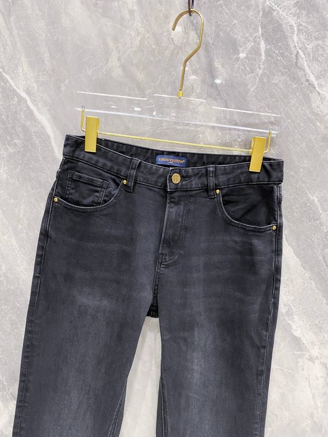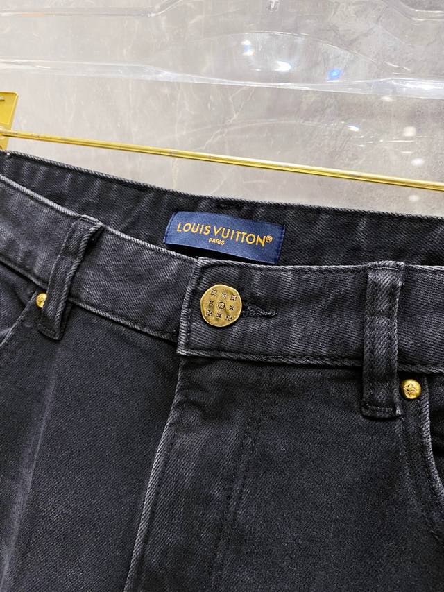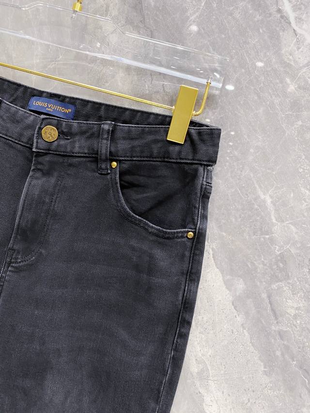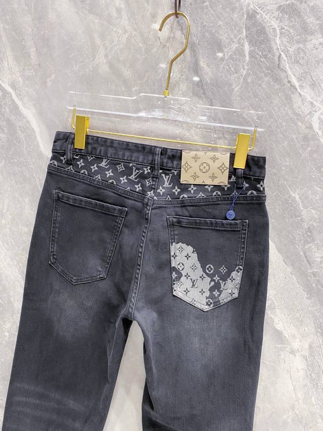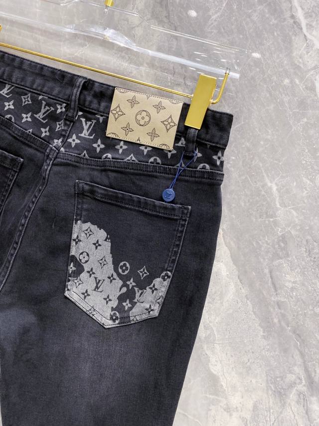 Louis Vuitton Lv Louis Vuitton 2025 Fall/Winter new style belt pocket print black slim-fit jeans -