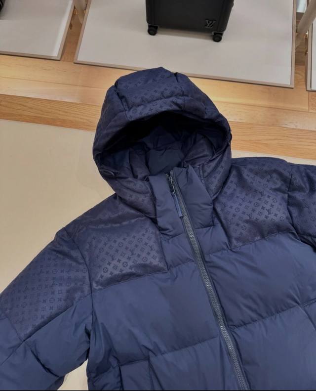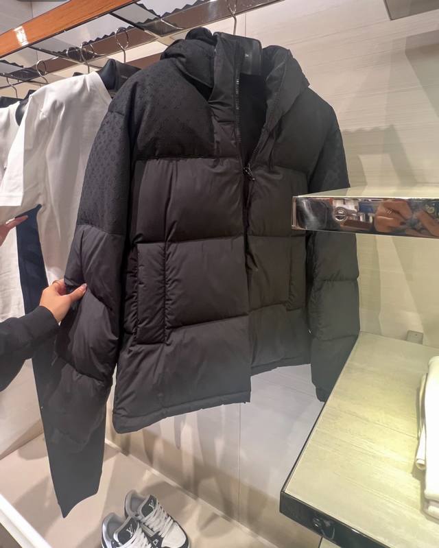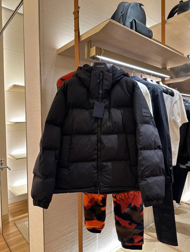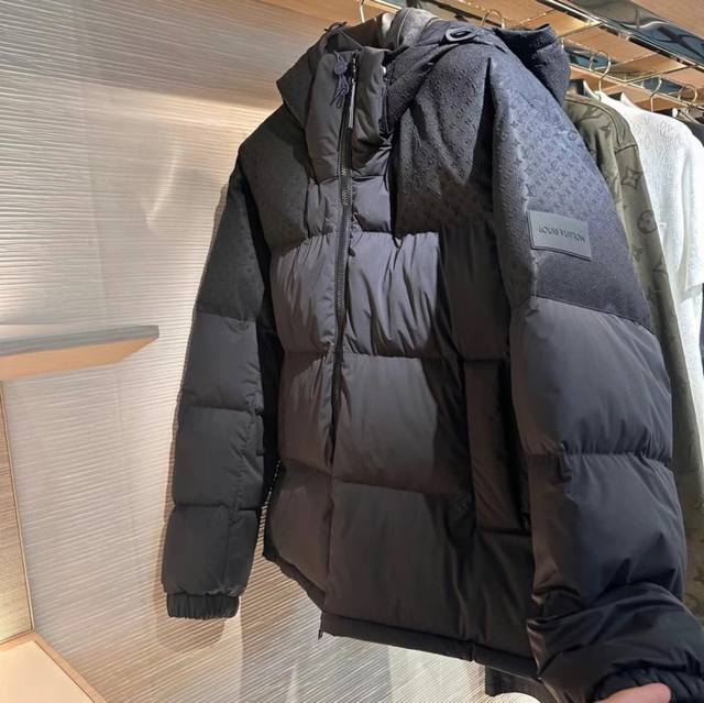 Louis Vuitton Monogram patchwork new three-dimensional jacquard hooded down jacket with detachable hood and variable stand-up collar. See the actual photos at the counter for reference.