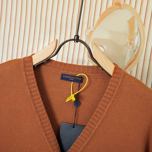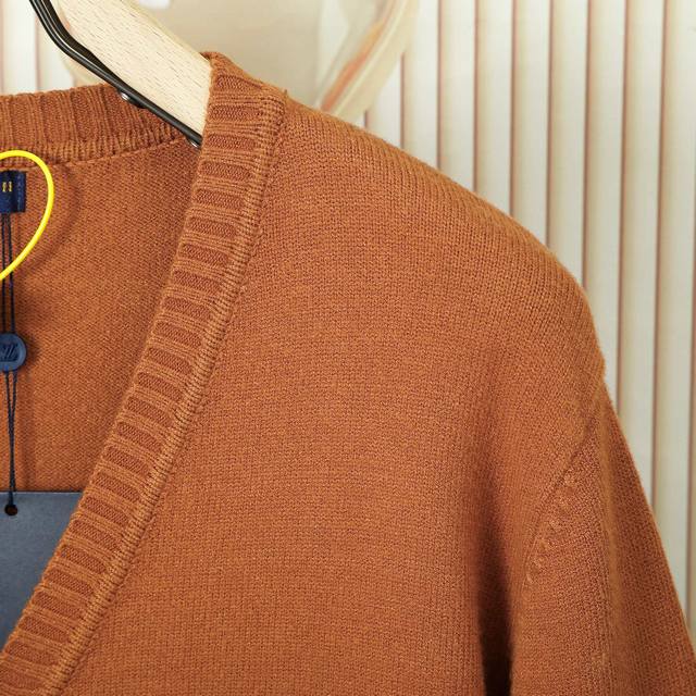 . Originally purchased for 16,700, this sweater is crafted from custom-dyed cashmere yarn, and the double-stranded fabric is knitted using the most advanced imported looms, using a heavy-duty jacquard pattern. The pockets are embellished with a gold-embroidered logo pattern, and the excess yarn at the bottom is manually pulled, cut, knotted, and buried. This cotton-blend cardigan embodies a preppy style in elegant hues.