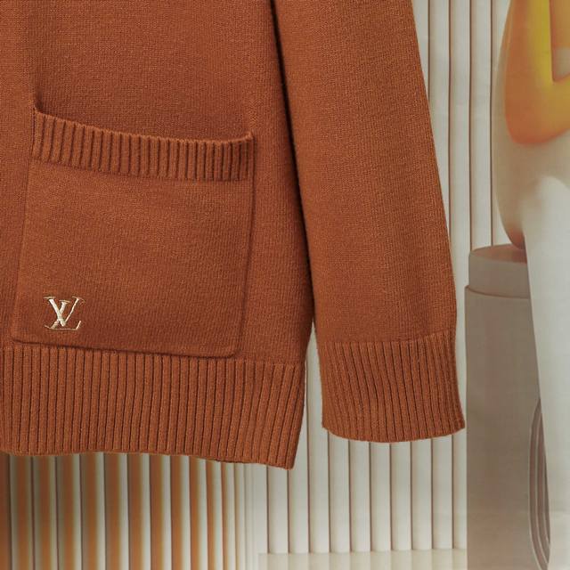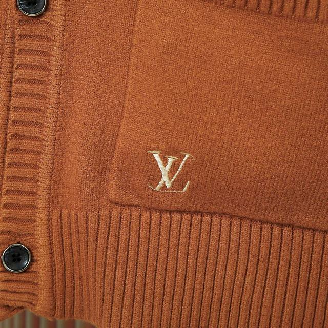 Louis Vuitton Small Logo Gold Knit Cardigan Sweater