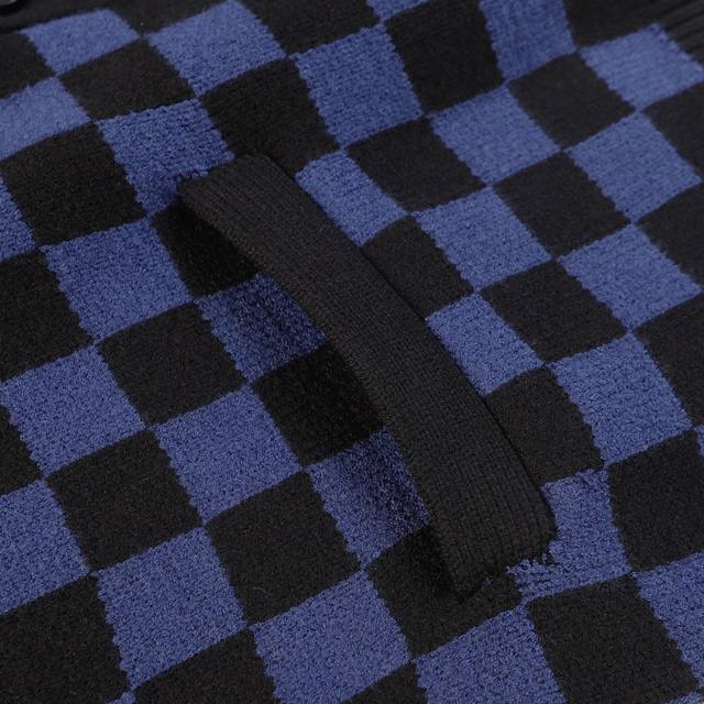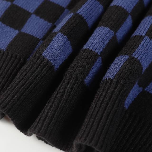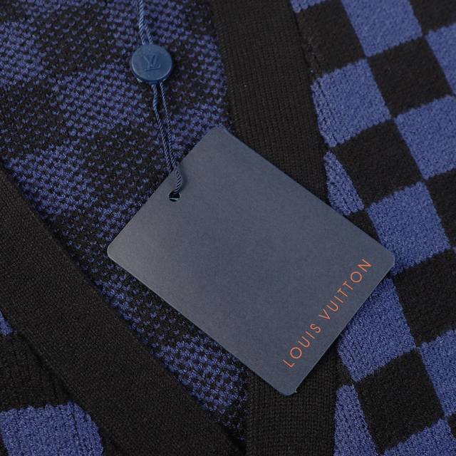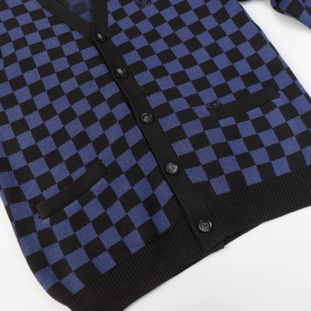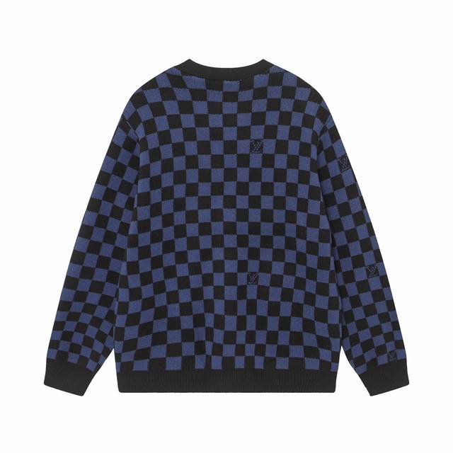 Louis Vuitton V-Neck Plaid Loose-Sleeve Sweater (Unisex Blue)