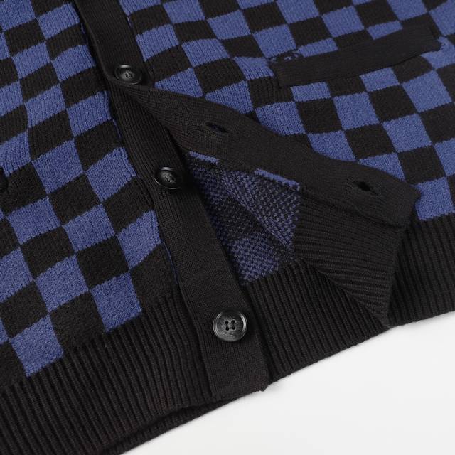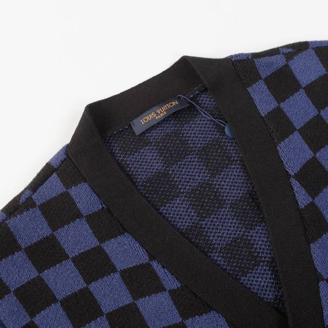 This cardigan is knitted from fine wool for a relaxed silhouette. The Wavy Damier jacquard pattern subtly incorporates the LV logo, giving the brand's classic elements a modern twist. Whether worn alone or with a jacket, it adds a preppy edge to formal looks.