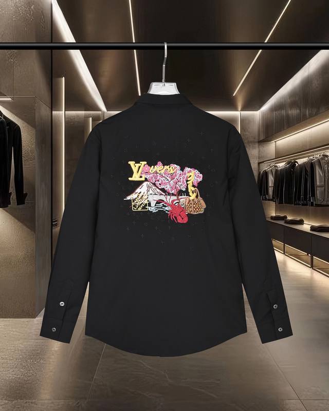 Louis Vuitton's hot-selling item is here! This heavily crafted, colorful cherry blossom volcano shirt features a crayfish monogram logo embroidered on it, crafted with hundreds of thousands of stitches. This new long-sleeved shirt from the 2025Ss official website features exquisitely burnt-out patterns and a high-end logo. Custom-made fabrics are breathable and comfortable, meticulously crafted, and feature impeccable detailing. The brand's design embodies high quality, with custom-engraved buttons and all three logos. The feel is delicate and soft! The casual cut is stunning, and the upper body fit is amazing! Sizes: M-Xxl