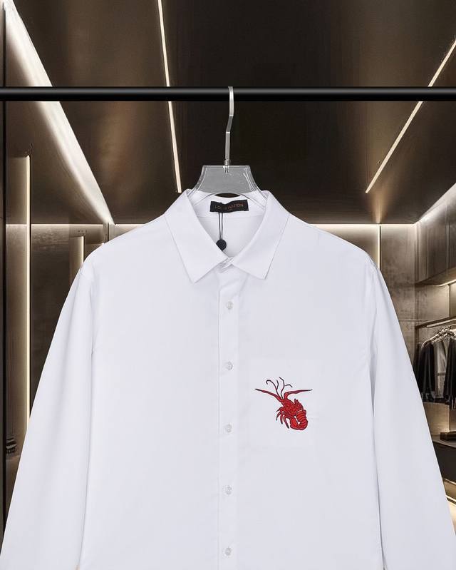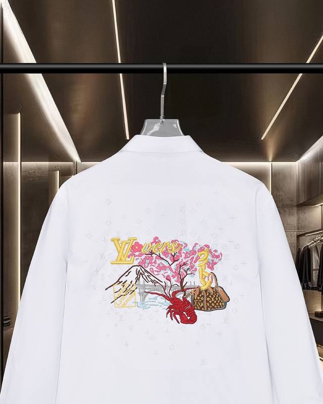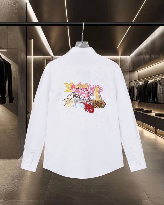 Louis Vuitton's hot-selling item is here! This long-sleeved shirt features a crayfish logo embroidered on a cherry blossom volcano pattern with hundreds of thousands of stitches. This new long-sleeved shirt from the 2025Ss official website features exquisitely designed, embroidered logos. This high-end version is custom-made at the counter, featuring breathable and comfortable fabrics. The brand's design embodies high quality, with custom-engraved buttons featuring the logo and all three labels. The brand's design elements reflect high quality. The shirt has a delicate and soft feel! The casual cut is stunning, and the upper body fit is amazing! Sizes: M-Xxl