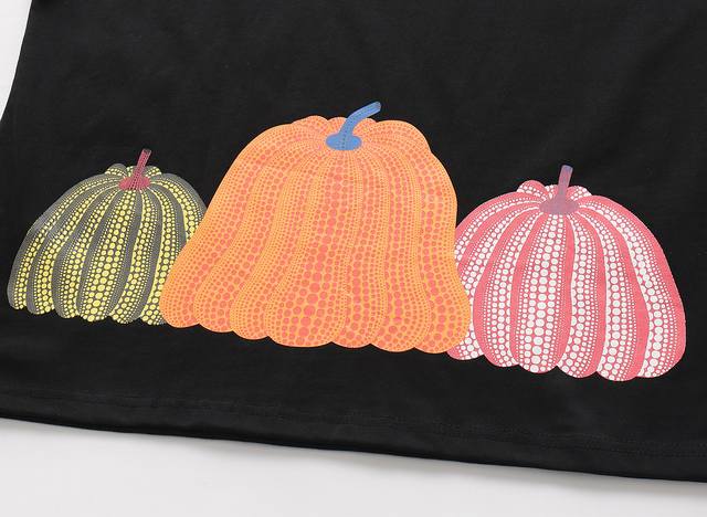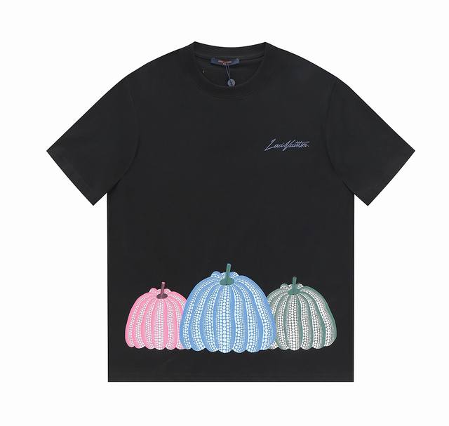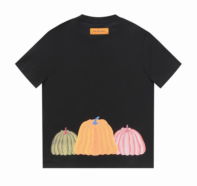 features the artist's iconic iridescent pumpkin pattern on the chest and hem. This abstract painting, composed of colorful polka dots, is a collaboration with Yayoi Kusama. The handwritten Louis Vuitton logo is also featured. This style is perfect for boyfriends. It's versatile, stylish, and wears great on everyone. It also comes with a hangtag, hanging beads, a washable packaging bag, and a complete set of accessories.