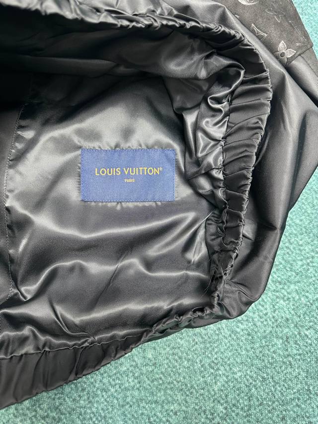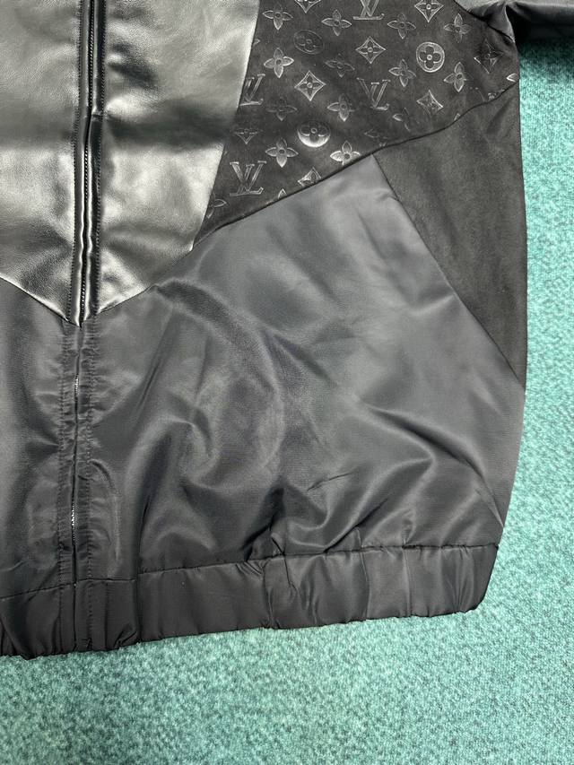 Louis Vuitton's new 25Ss sweatshirt features a playful combination of multiple materials, blending a technical nylon body with soft lambskin and Monogram embossed suede leather. This creates a sophisticated look with a relaxed silhouette, making it a versatile choice for the transitional seasons. Sizes: S, M, L, XL.
