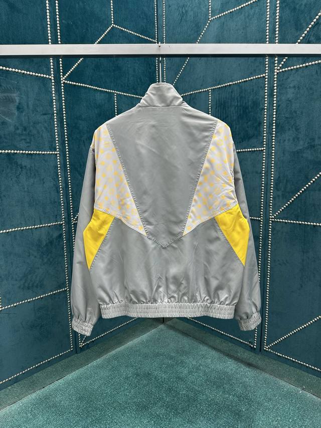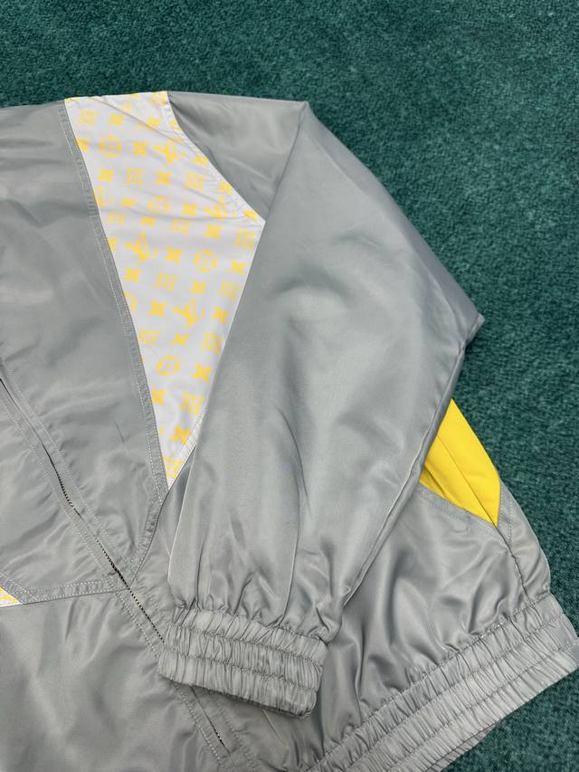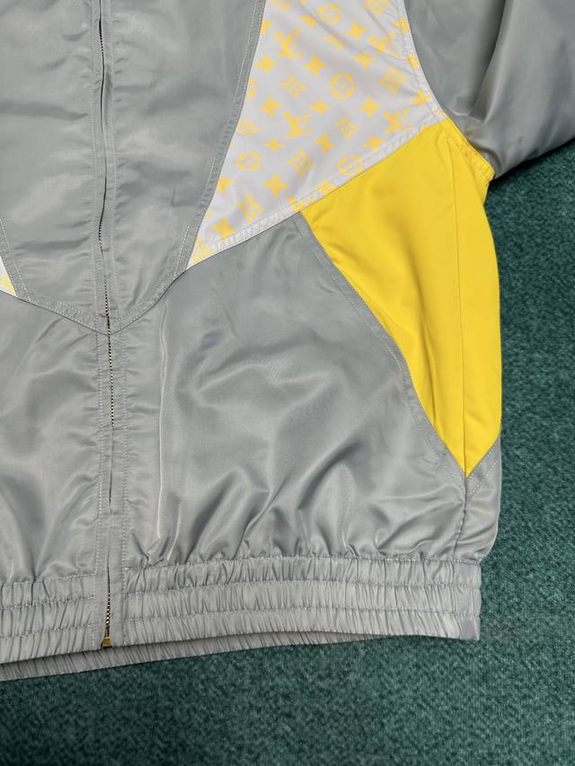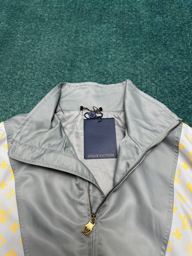 Louis Vuitton's new 25Ss sweatshirt features a vibrant patchwork design with technical fabric and Monogram Glow print. Pair it with matching shorts for a casual travel look that continues the season's effortless style. A high neck, zip closure, elastic hem, and cuffs provide a comfortable fit. Sizes: 46, 48, 50, 52.