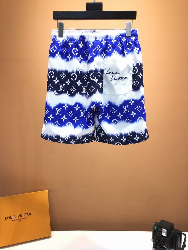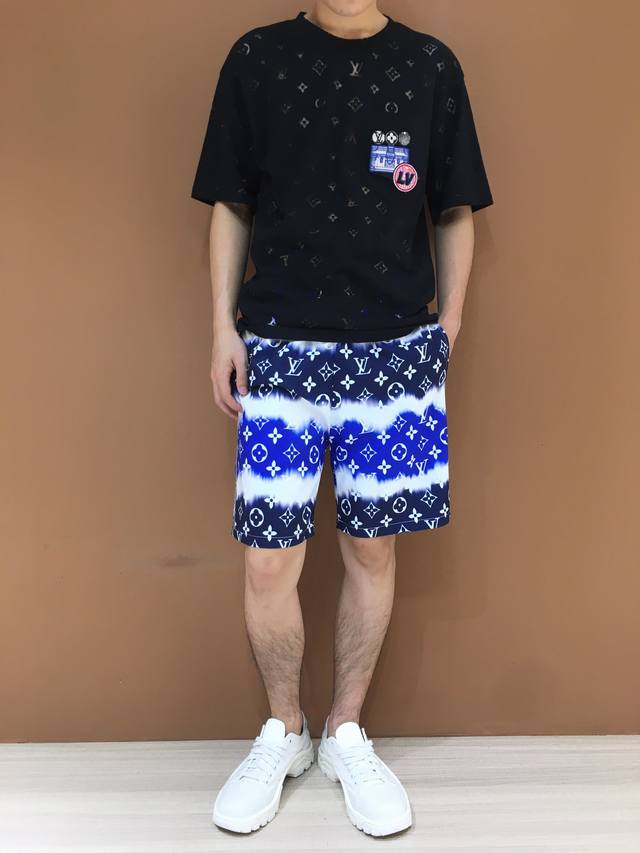Louisvuitton, the latest spring and summer products, available at the counter at the same time, original single-piece goods, fashionable and casual shorts, imported original fabrics, super comfortable upper body, top digital print hollow feeling letter pattern logo, highlighting the personality of young people, original hardware accessories, counter appearance, three complete labels, fashionable and handsome upper body, purchasing level J1, size: M-3Xl