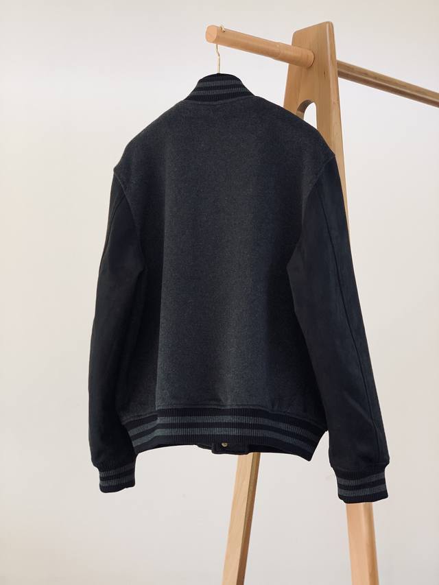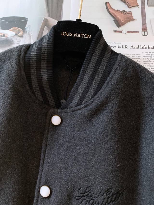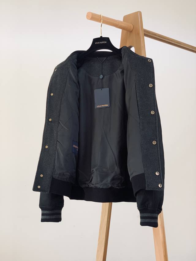Louisvuitton's baseball-embroidered jacket, the same design as Zlatan Ibrahimovi?'s, stands out from the crowd. This classic, casual silhouette is reimagined with the brand's exquisite craftsmanship. Nubuck sleeves create a soft texture, while the embroidered logo adds a touch of handwritten elegance to the chest. Pearlescent snaps add a touch of refined detail. Unisex fit! Size