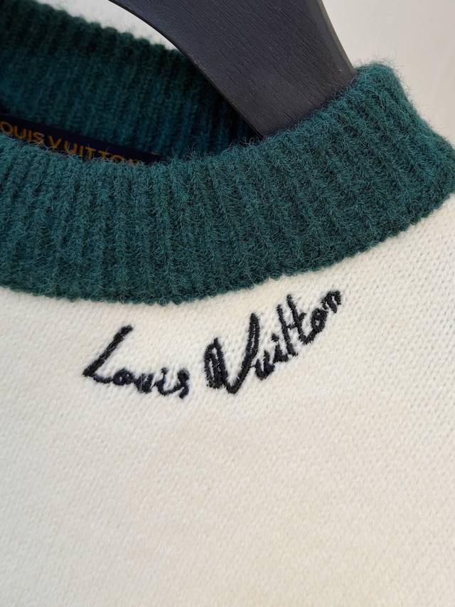 Lv 2025 New Autumn/Winter Knitted Wool Sweater. High-quality Italian imported wool blend fabric, high-density knit, fashionable and versatile sweater, very stylish. Classic logo jacquard design. Durable and not easily deformed, the fit can easily match various styles, a classic fashion style that is sought after year. All three labels are complete. High-quality bulk goods. Sizes: M-2XL DDD