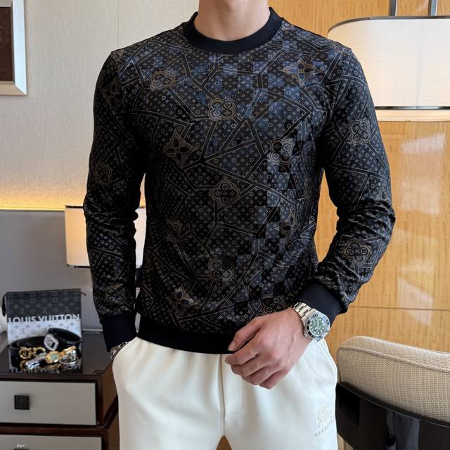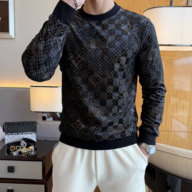 Lv 2025Ss autumn and winter counter hot-selling sweatshirt T-shirt, made of customized European cotton fabric with top brand elements and craftsmanship, soft, delicate, comfortable and warm, made with multiple craftsmanship, a basic base shirt is indispensable in men's wardrobe and can be used to match various clothing anytime and anywhere to meet your daily needs. The design of the clothes is simple but not simple. Dear friends, hurry up and buy the standard version size: M-3Xl, the maximum wearer is 190 pounds!