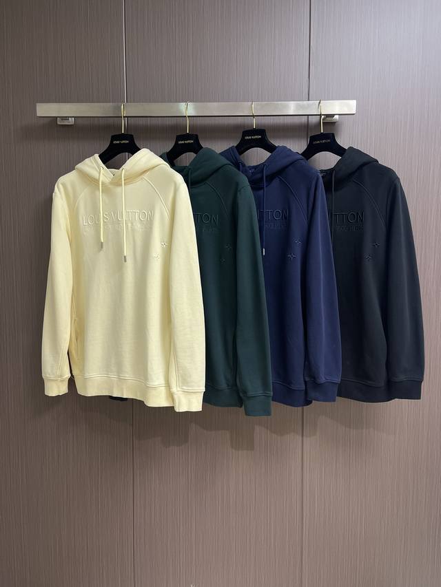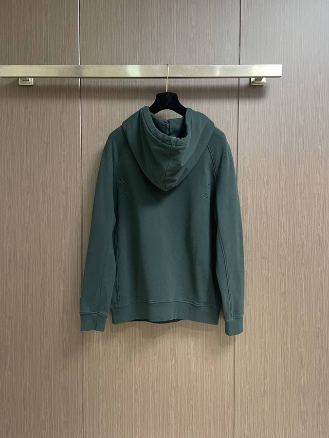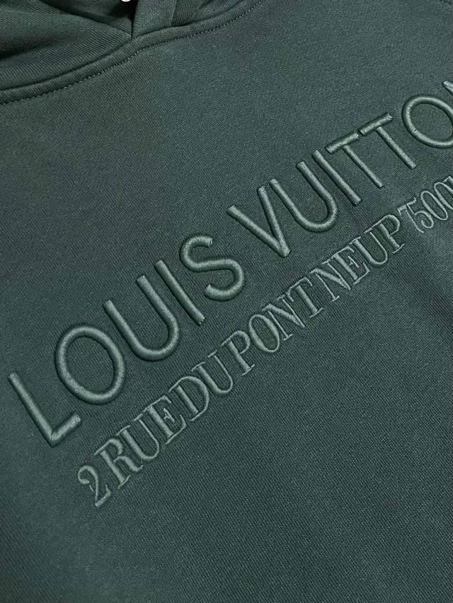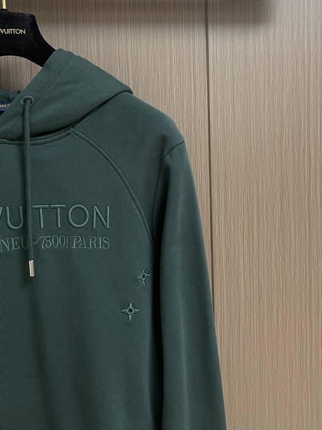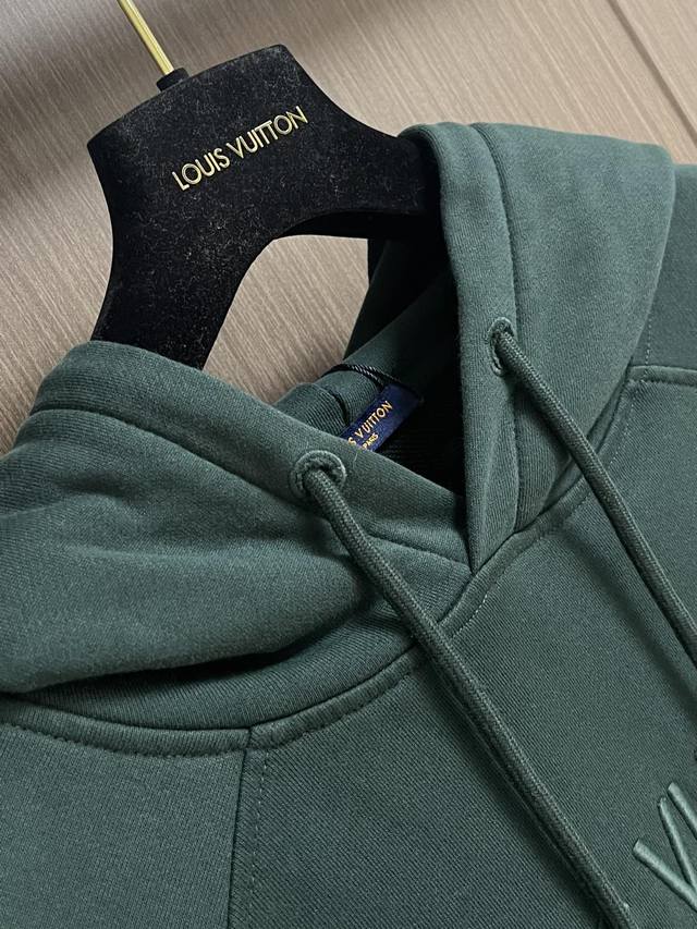 Lv 2025Ss early autumn new embroidered hooded sweatshirt, the fabric is made of 26S double yarn surface and 10S fish scale bottom fabric, with 380G ribbing and 21S double yarn tensioning, which not only ensures the texture and warmth of the clothing, but also shows the quality in the details. The Vuitton embroidery on the front is fine, adding a touch of bright color to the simple design, and the use of terry fish scale bottom fabric makes the clothing feel softer and thicker, with good water absorption and warmth retention. Overall, this hoodie is not only fashionable and versatile, but also shows high-quality craftsmanship and design in the details. Size: S-Xl
