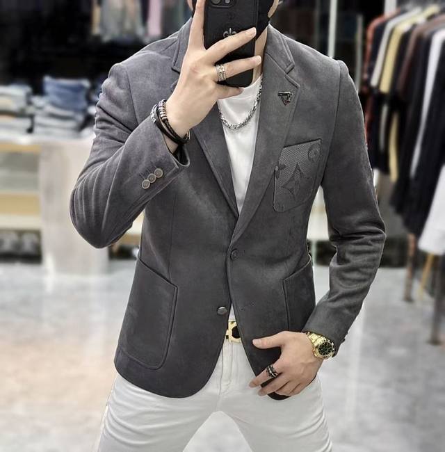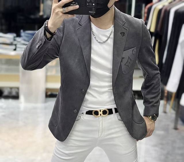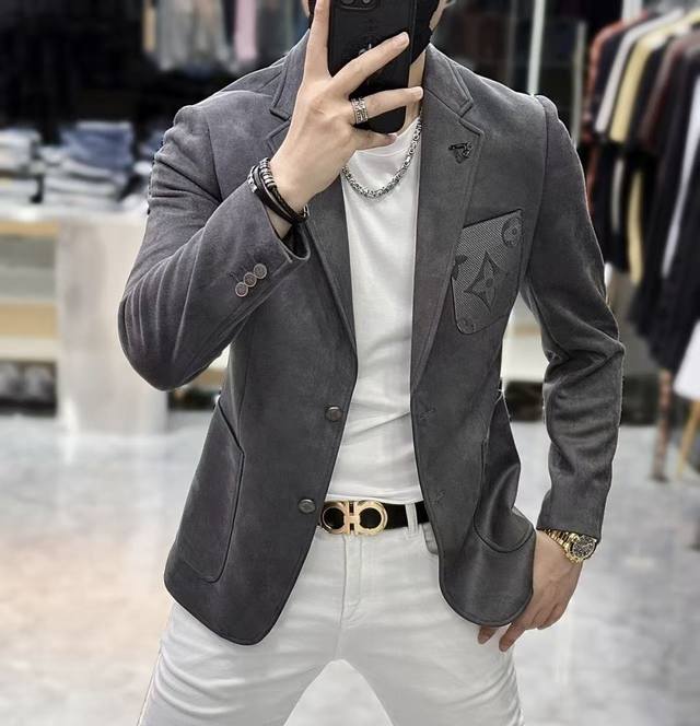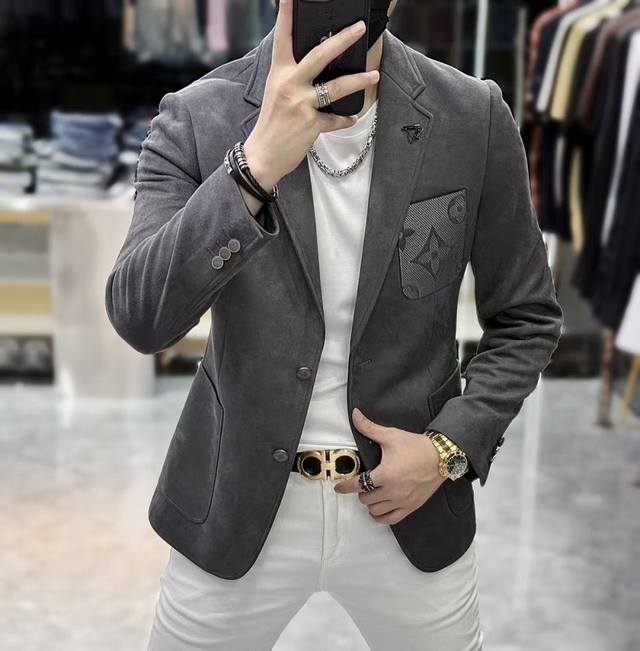 Lv 2025Ss Snake Year Autumn/Winter Hot Sale: This casual blazer is a stylish and minimalist design, elegant and stylish, with a casual yet refined feel. Fabric: This high-tech custom polyester fabric offers a non-traditional design, creating a youthful and fashionable look. The details are meticulously crafted, while the fit is regular, yet the cut is unique. It's neither loose nor slim, but rather a moderate fit, offering a versatile look for both slender and thinner bodies. Sizes: 48-56