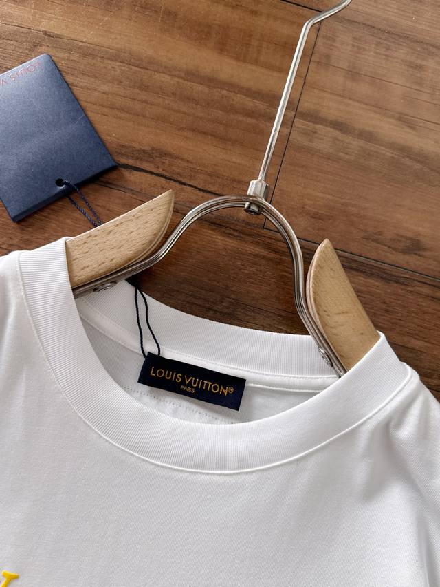 Lv 2026 Summer New Arrival: Unisex Short-Sleeve T-Shirt! Custom-made pure cotton fabric, original ribbed craftsmanship, and a heavy-duty letter logo design on the chest! Simple and elegant, versatile and easy to match, extremely high-end, perfectly blending fashion and style